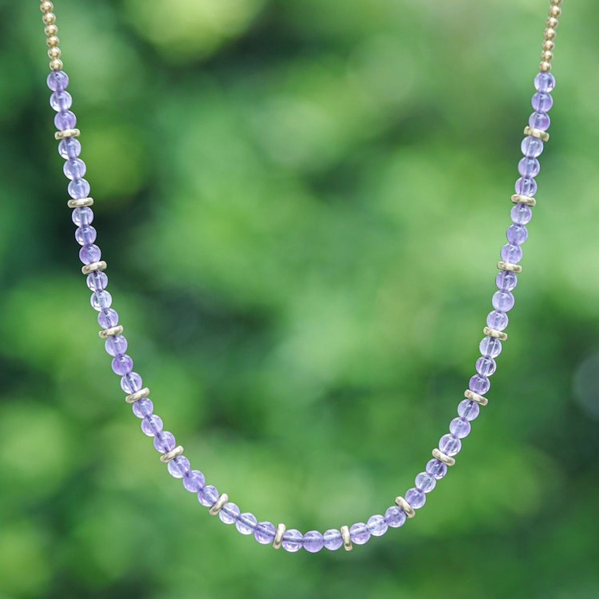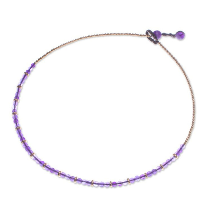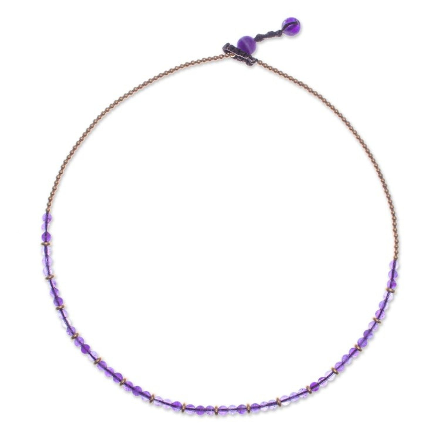 Handcrafted Amethyst and Brass Beaded Necklace from Thailand 'Wise Orbs'