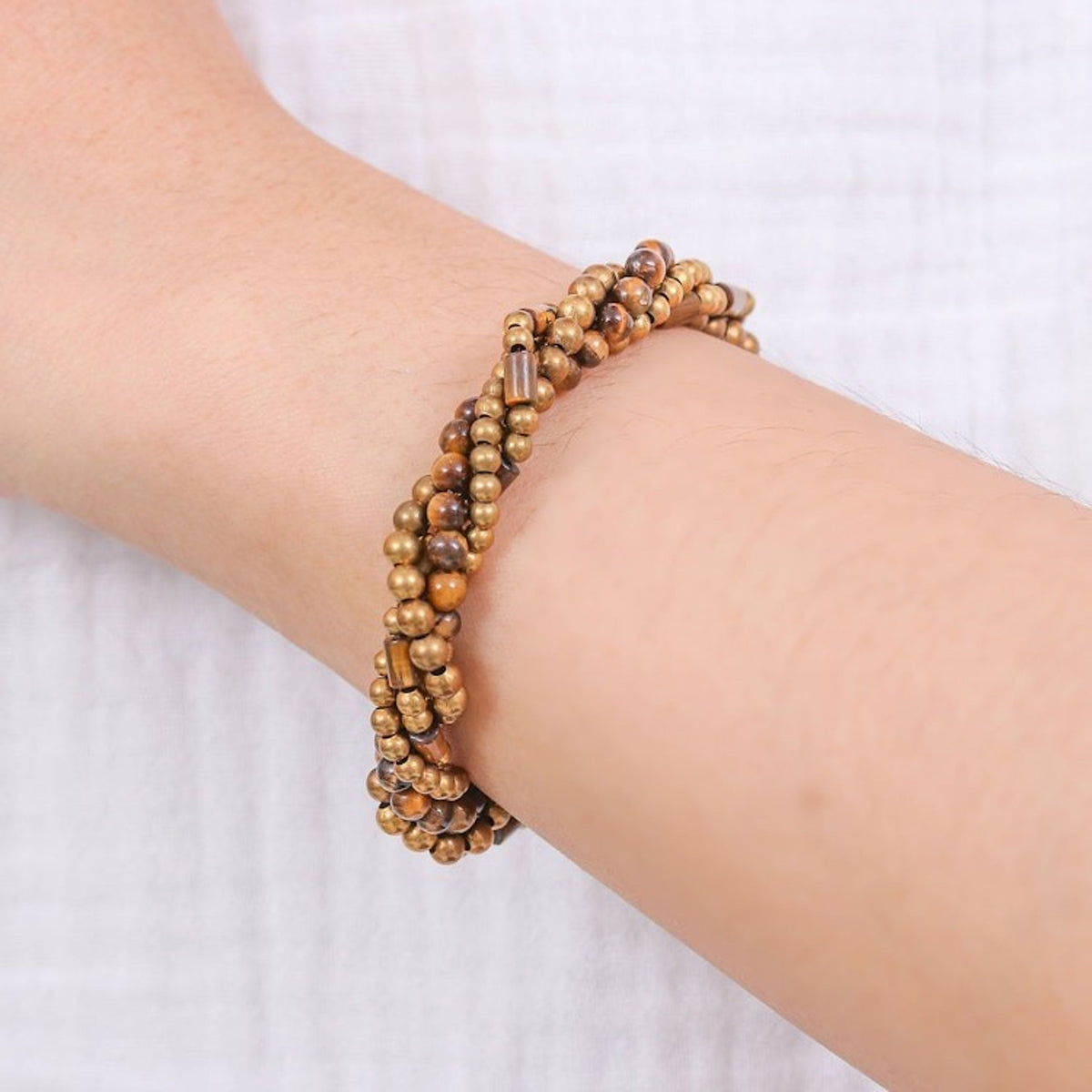 Multi-Strand Tiger's Eye Beaded Bracelet from Thailand 'Earthen Beads'