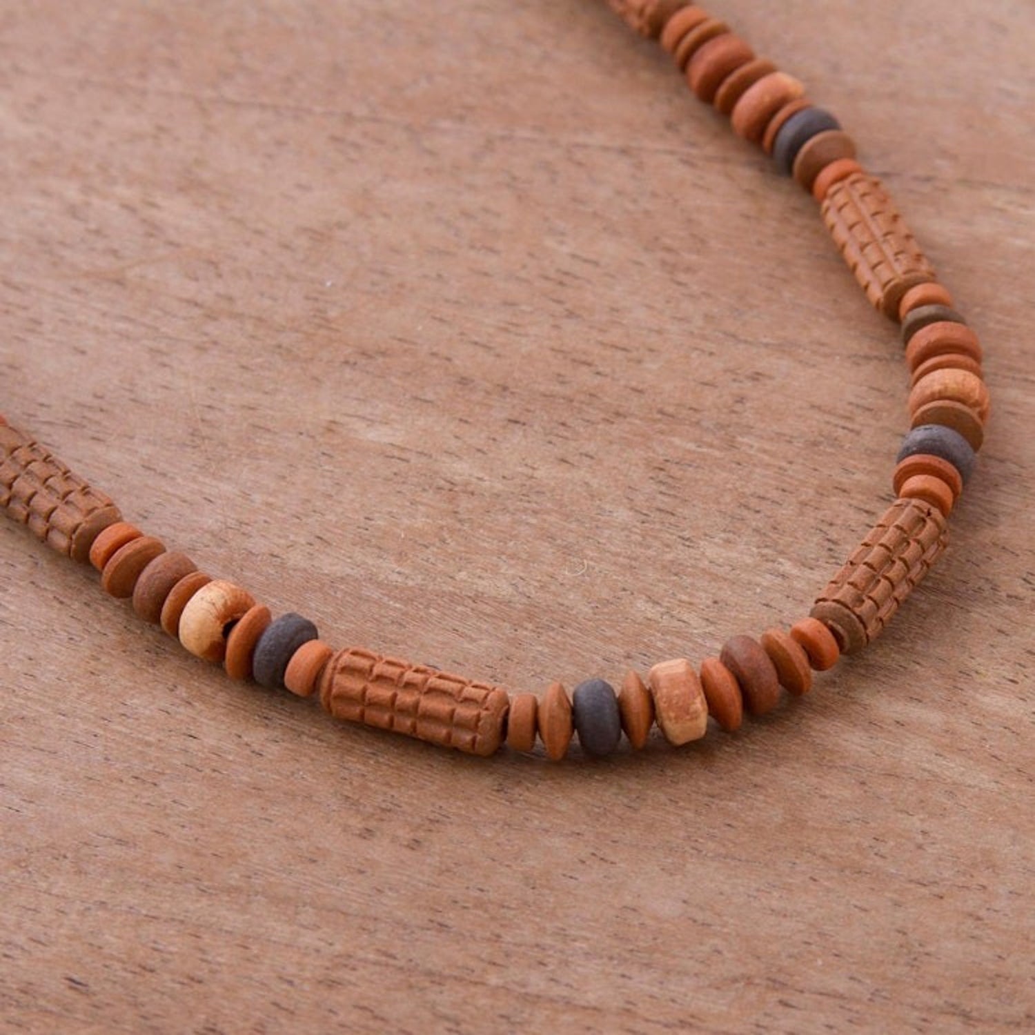 Ceramic Beaded Necklace with Maize Motif from Peru 'Andean Corn'