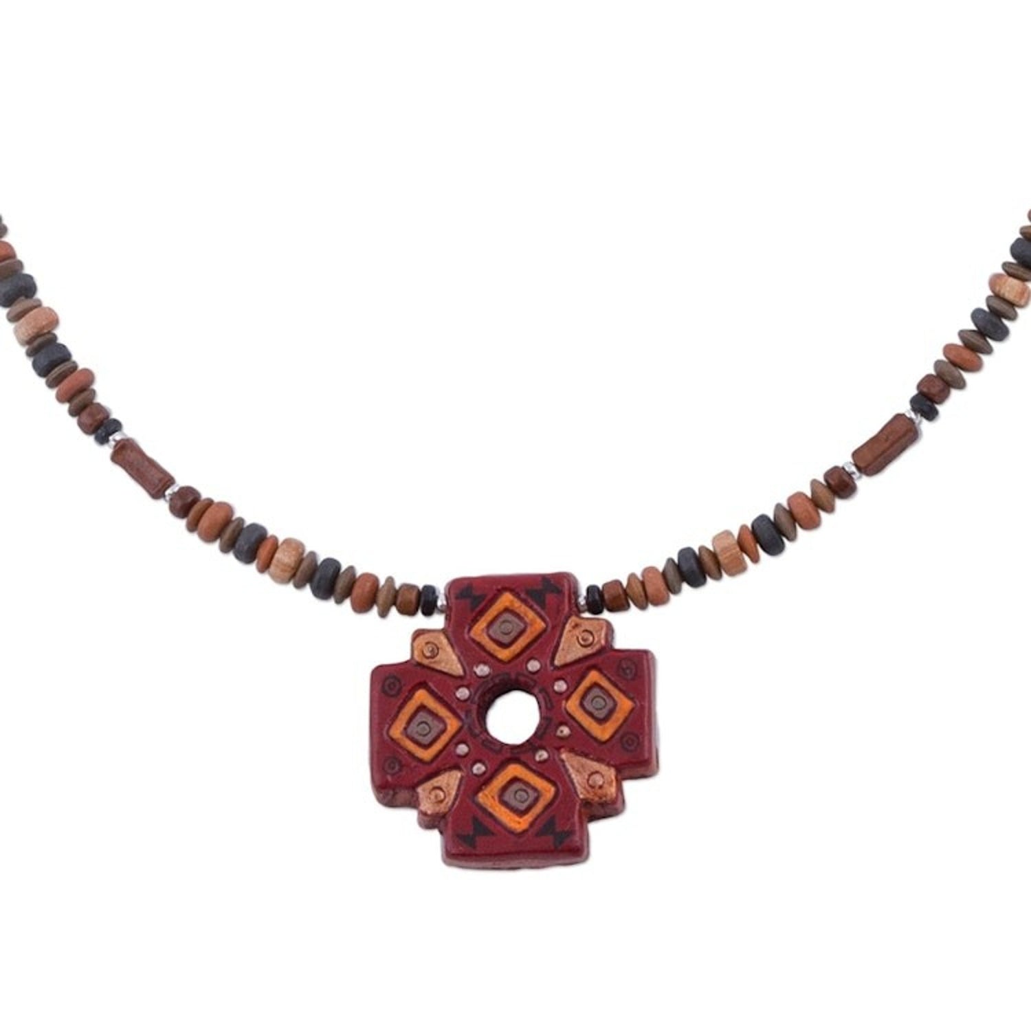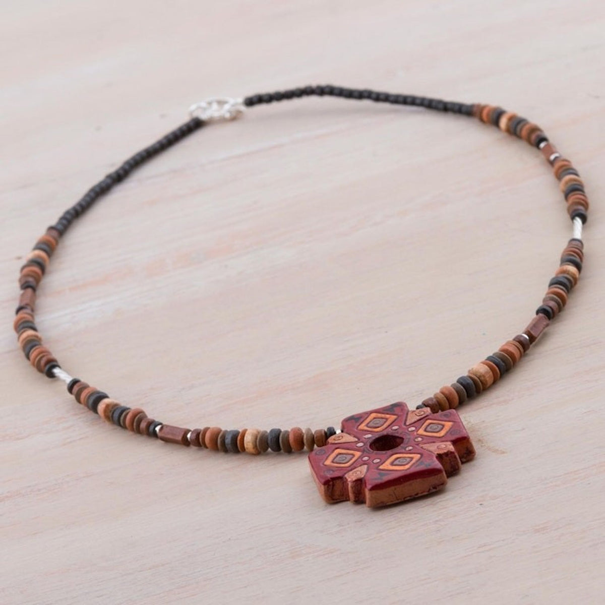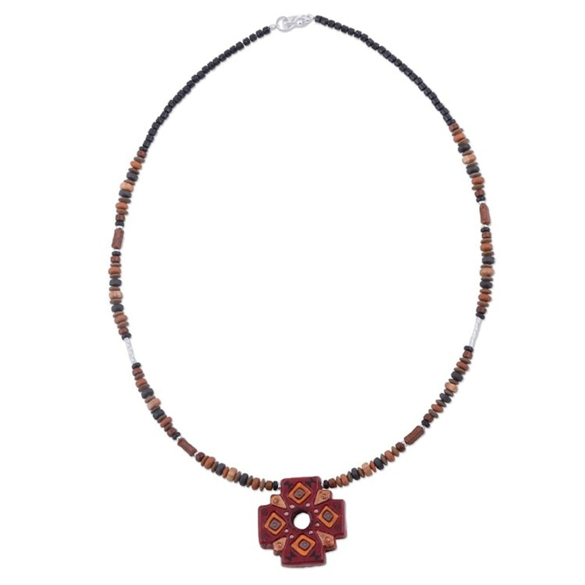 Sterling Silver and Ceramic Cross Necklace from Peru 'Andean Cross'