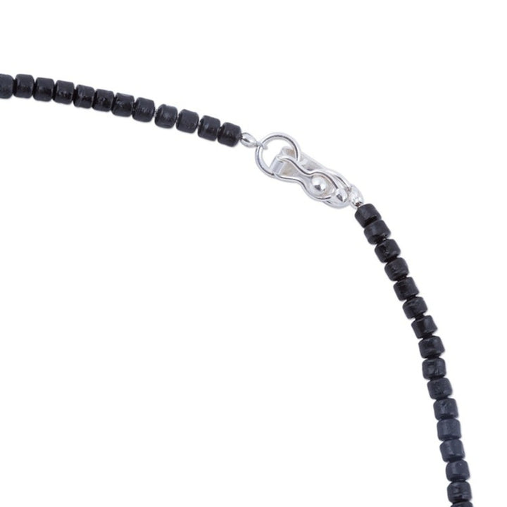 This Andean Cross necklace by Peruvian artisan Ubaldina Paucar Achancaray is inspired by Inca motifs. The pendant is a hand-painted ceramic cross, flanked by a strand of ceramic and petite sterling silver beads. This necklace beautifully blends traditional symbolism with modern design. The piece is finished with a silver clasp, ensuring a secure and elegant fit.