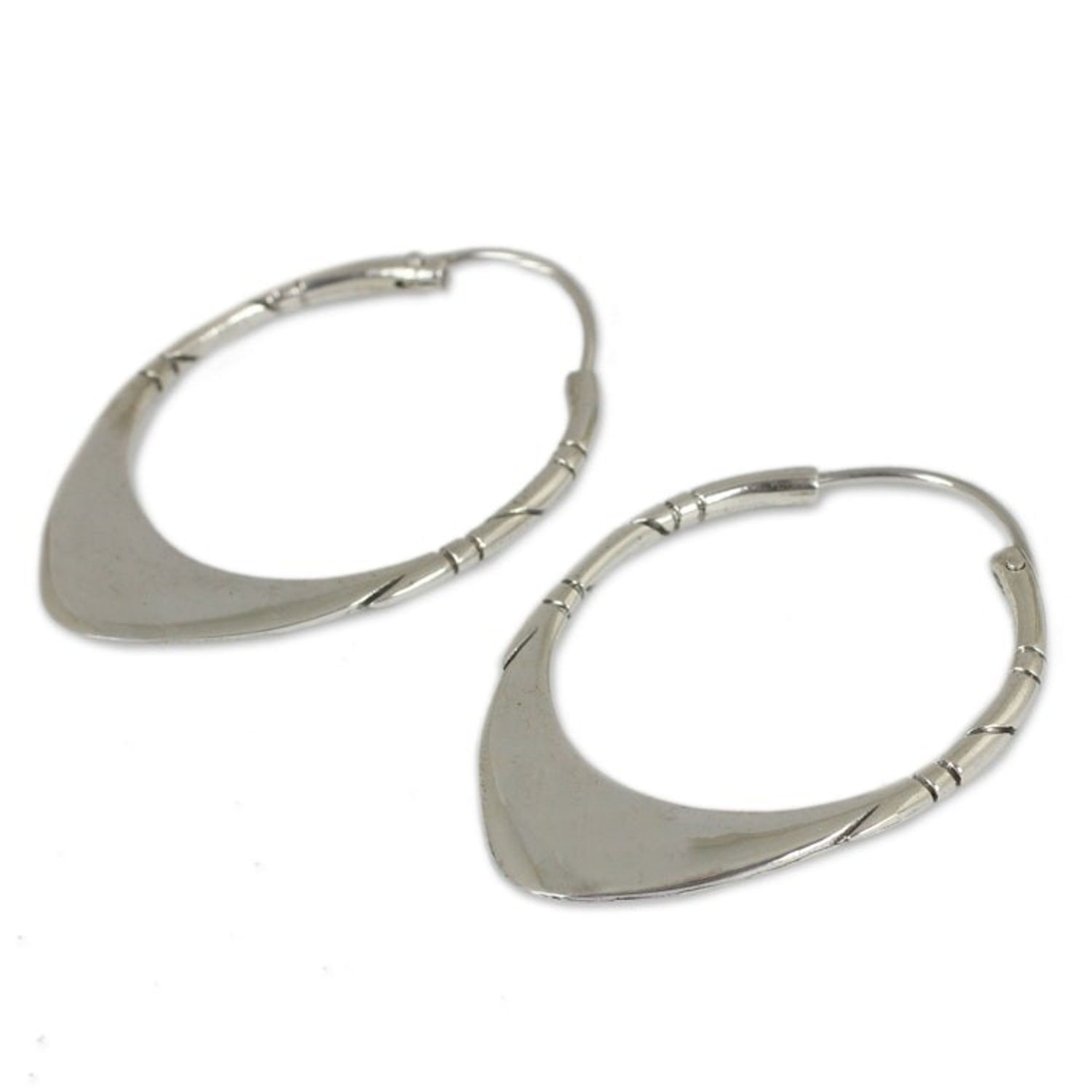 950 Silver Hoop Earrings 'Silver Boomerang'