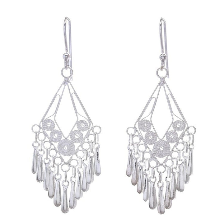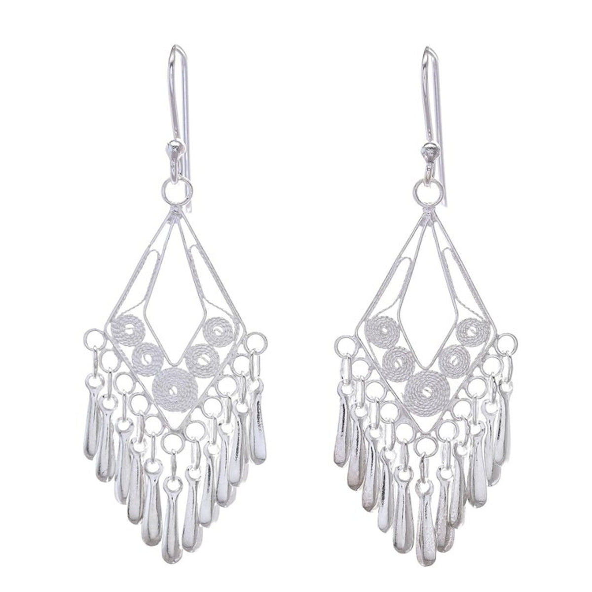 Diamond-Shaped Sterling Silver Filigree Chandelier Earrings 'Diamond Swing'