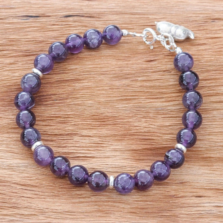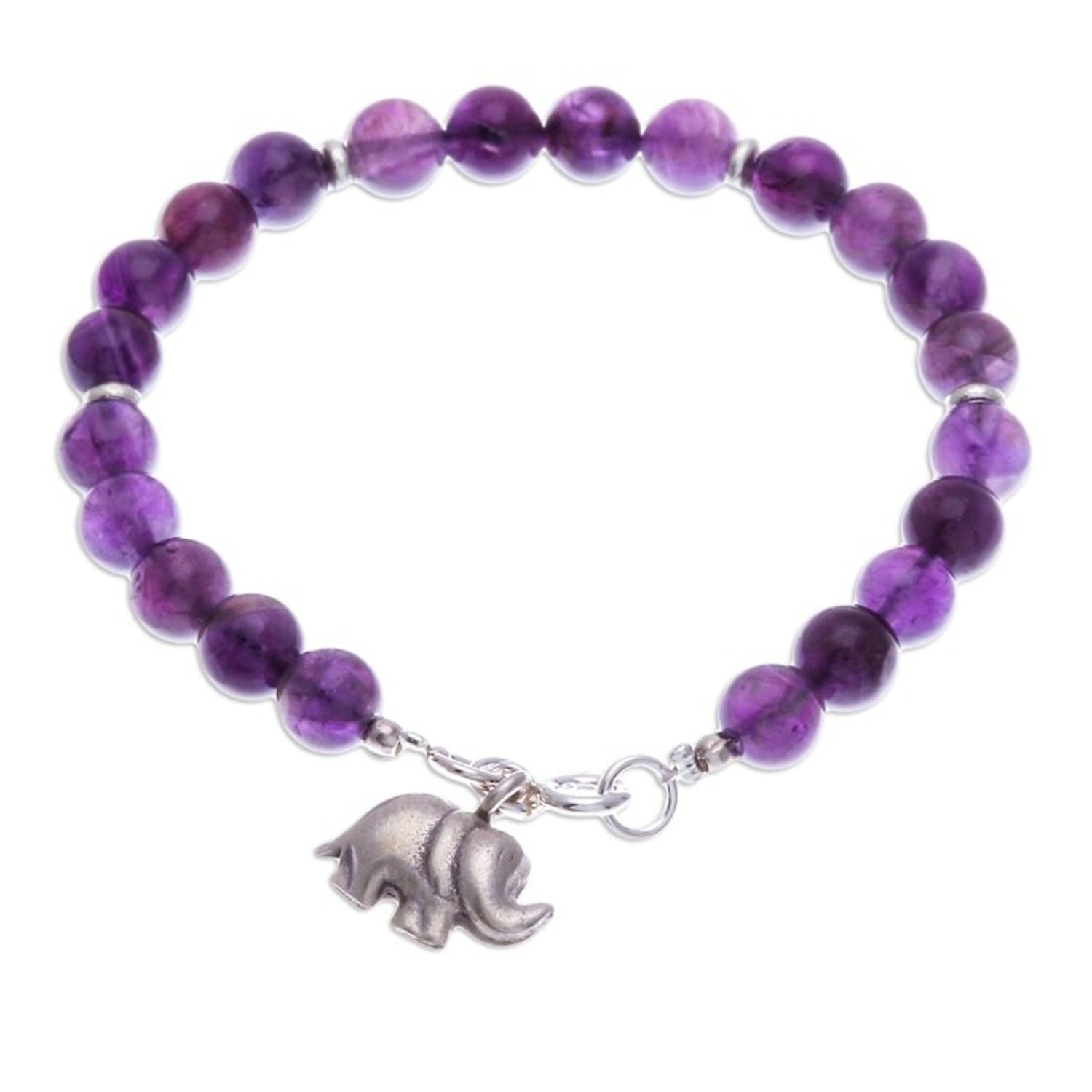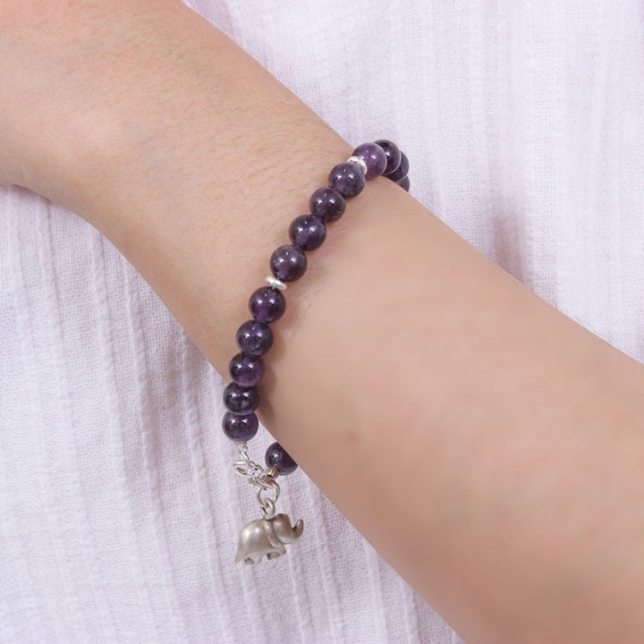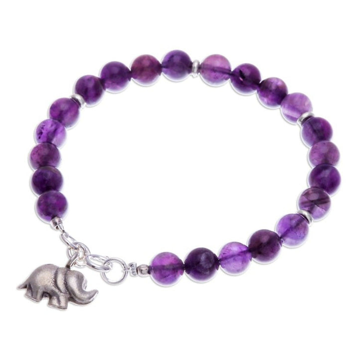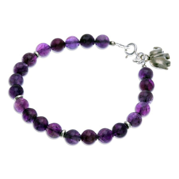 Handmade Amethyst Beaded Bracelet with Elephant Charm 'Wise Grace'