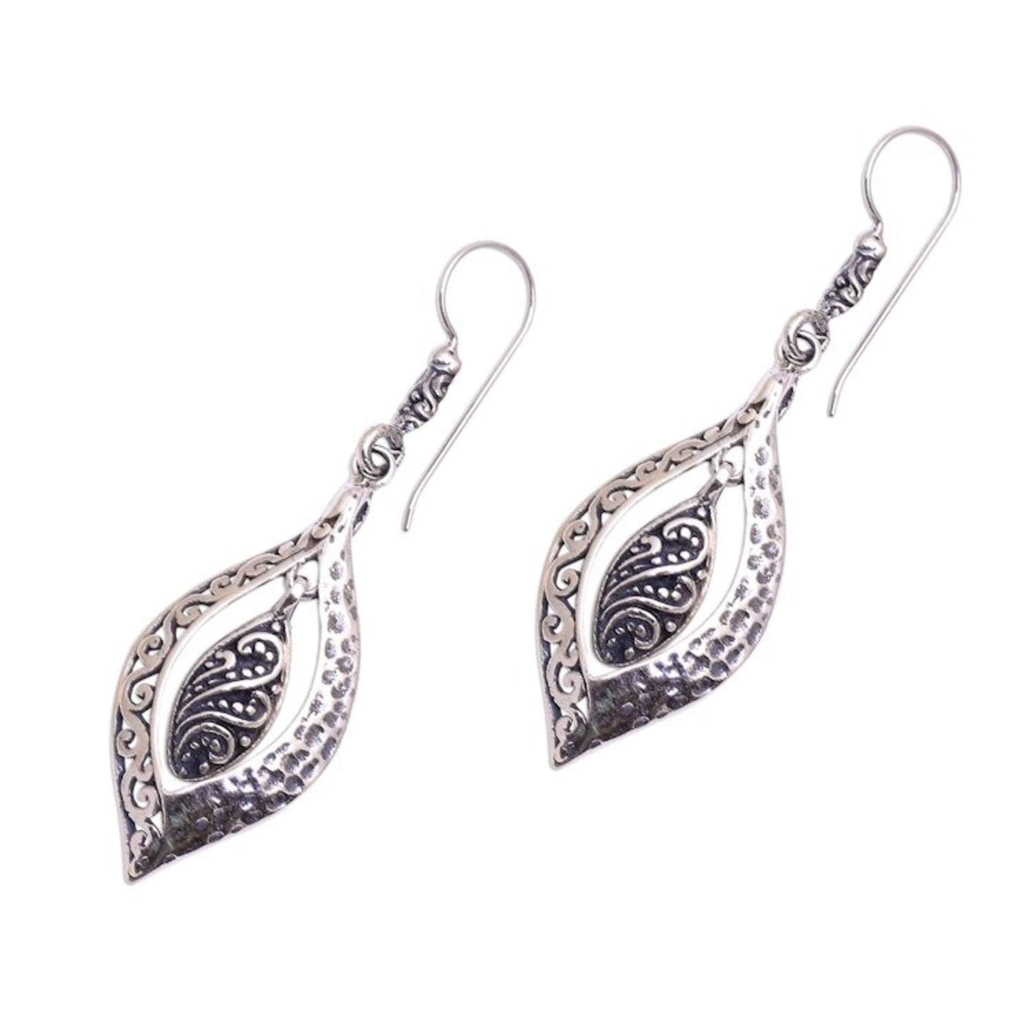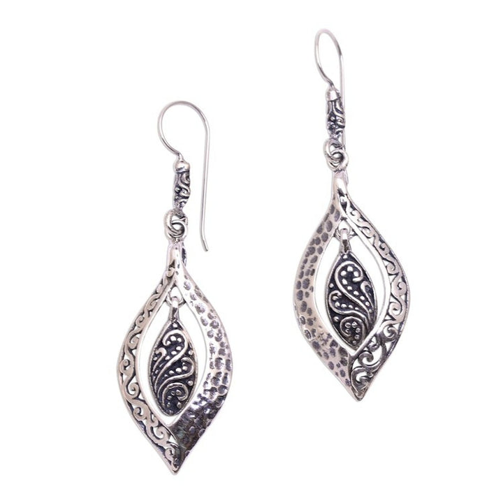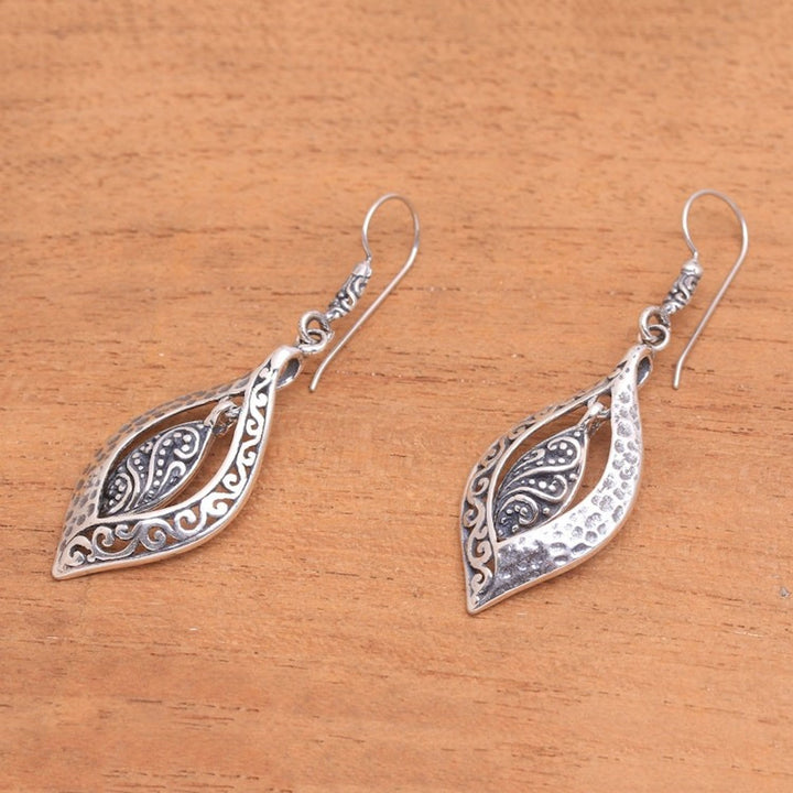 Artisan Crafted Sterling Silver Dangle Earrings from Bali 'Baby Leaves'