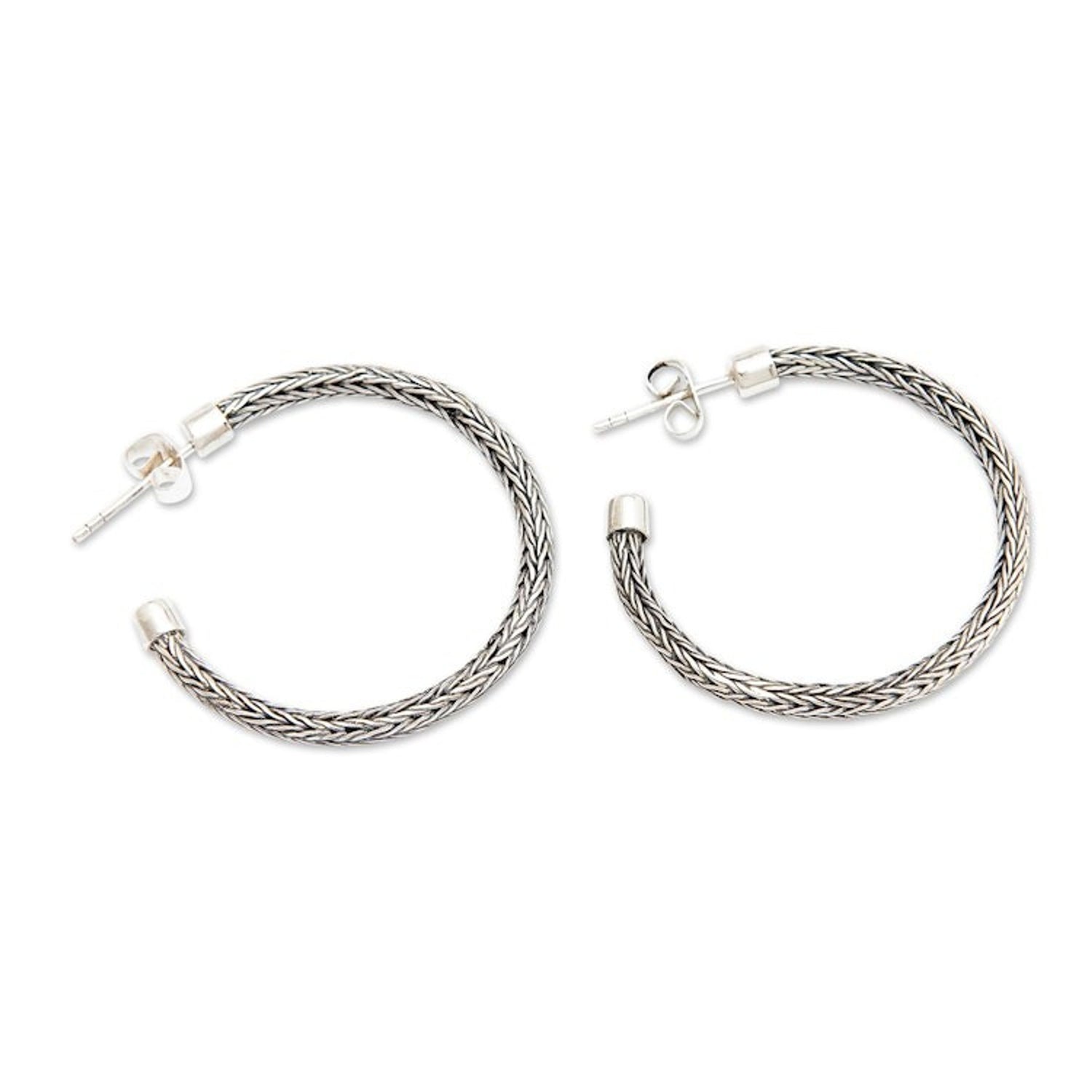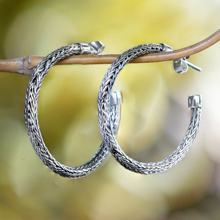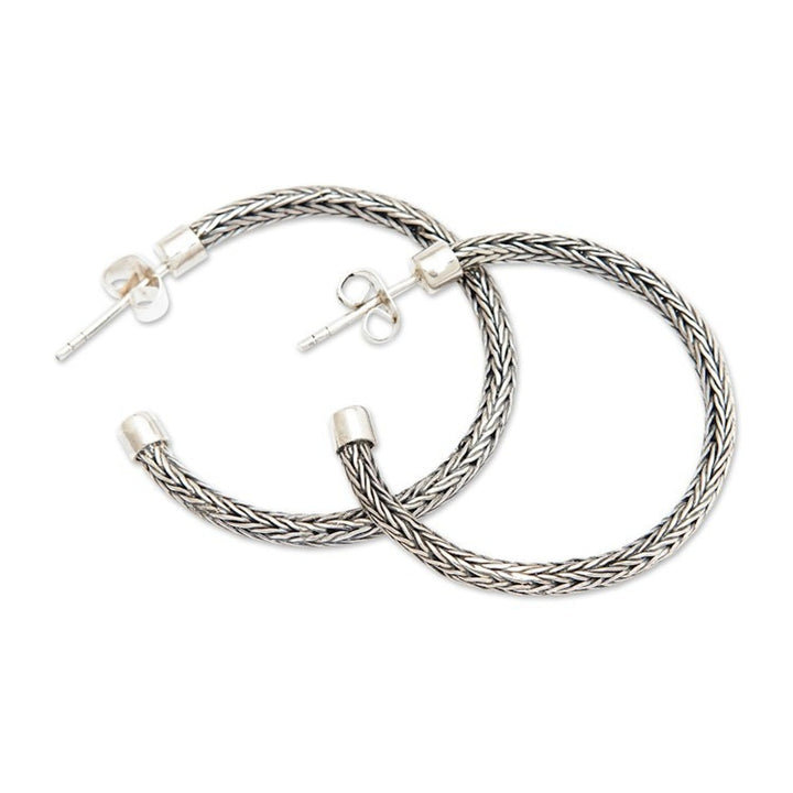 Traditional Naga Sterling Silver Half-Hoop Earrings 'Naga Era'