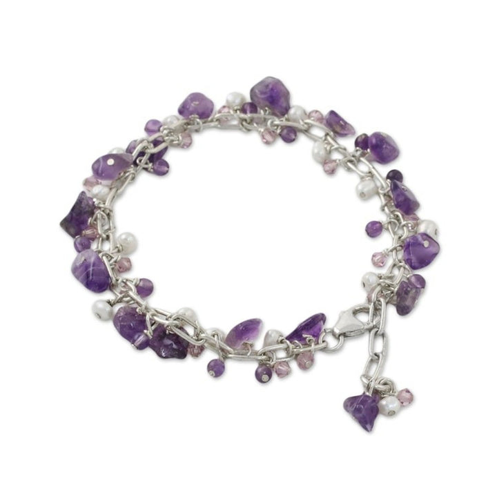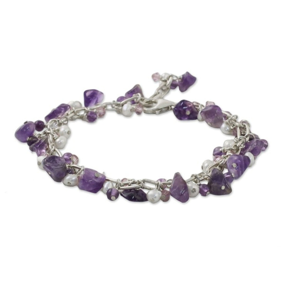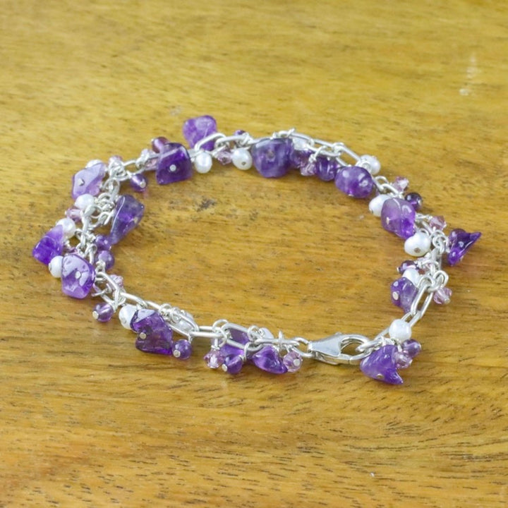 Amethyst and Cultured Pearl Beaded Bracelet from Thailand 'Violet Dream'
