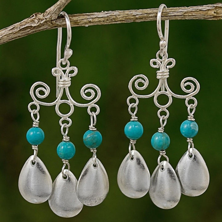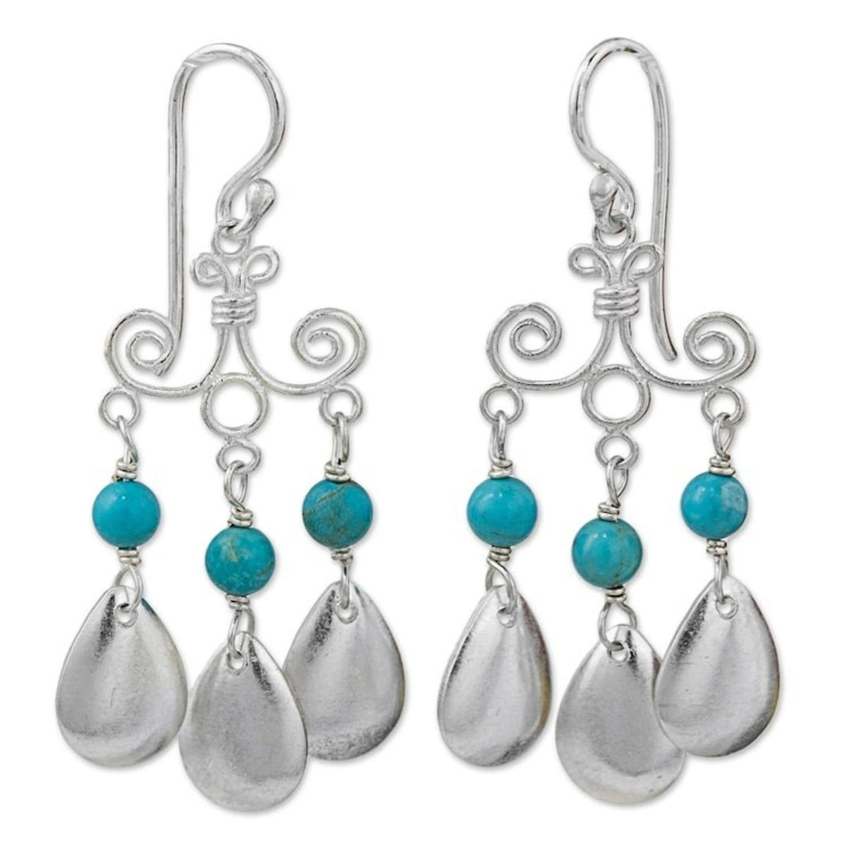 Sterling Silver Calcite Chandelier Earrings from Thailand 'Blue-Green Sky'