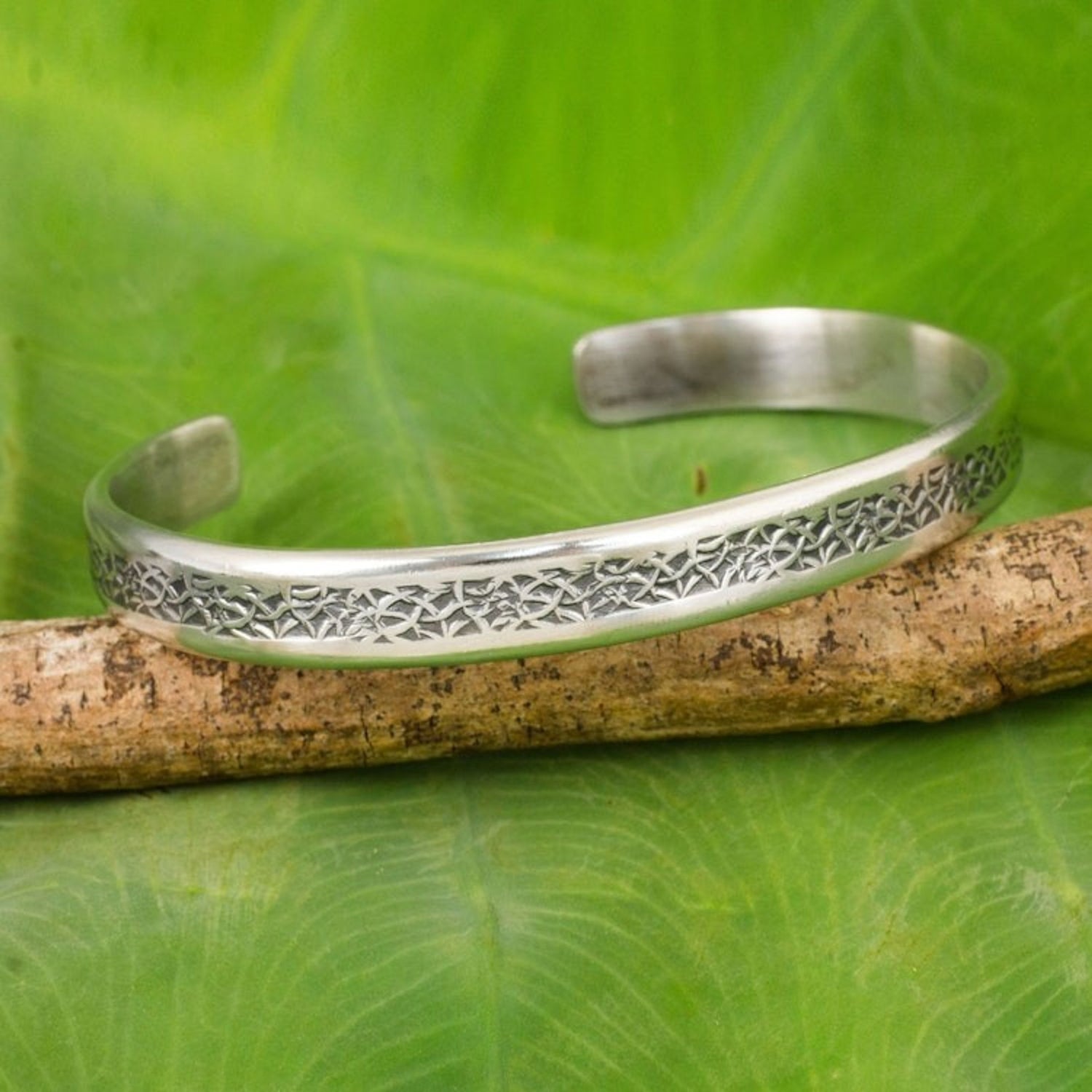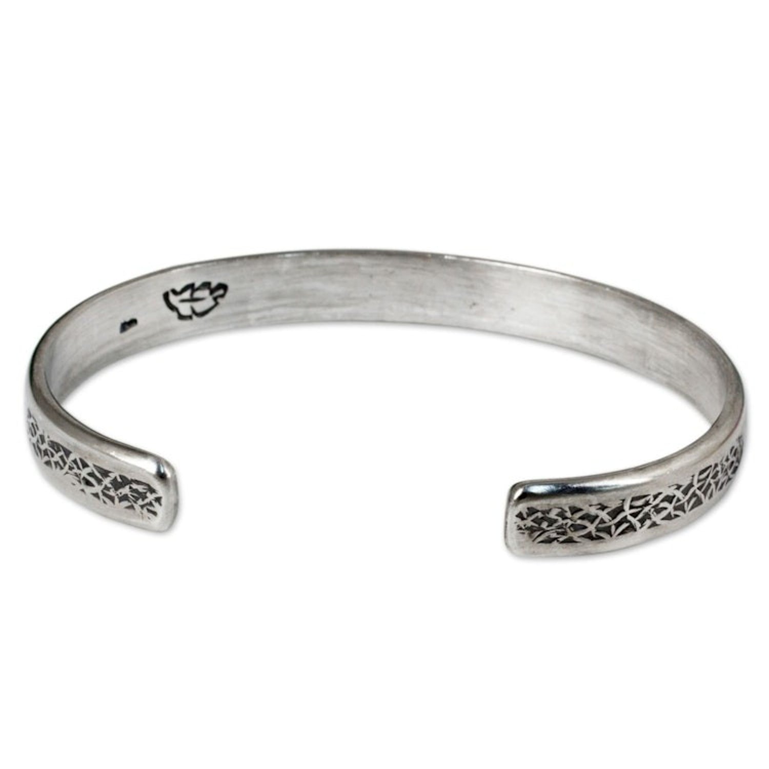 Thailand Sterling Silver Free Trade Cuff Bracelet 'Forest Footpaths'