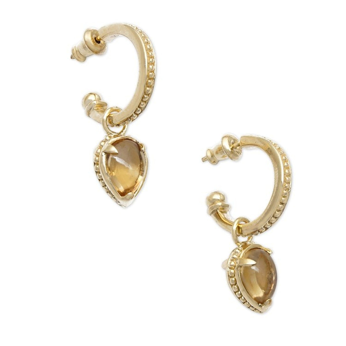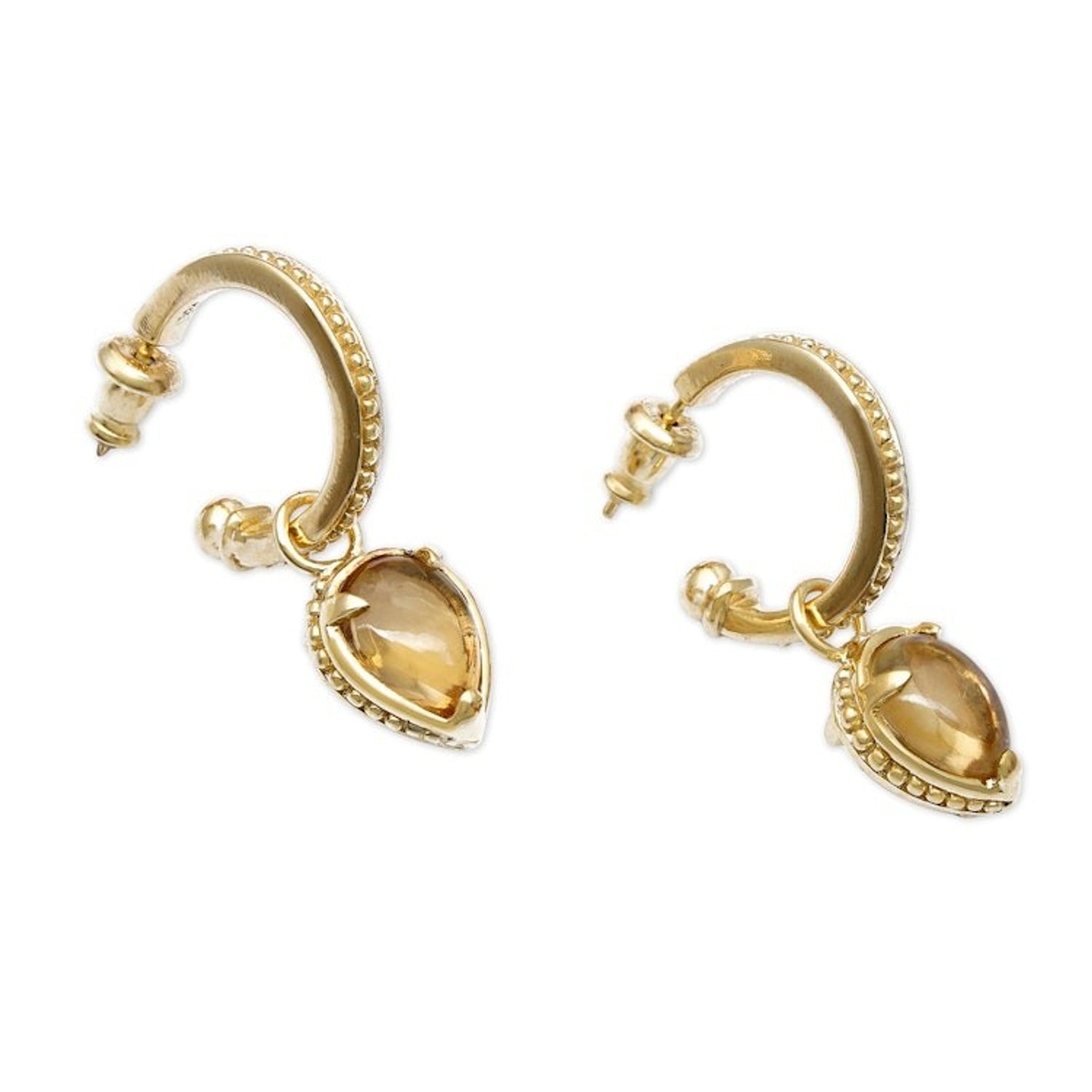 Handcrafted in 18k gold-plated 925 sterling silver and citrine, these earrings measure 1.2 inches L x 0.4 inches W x 0.3 inches D, and feature a combination finish with post earring backs.
