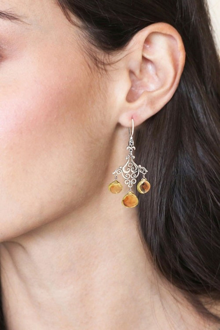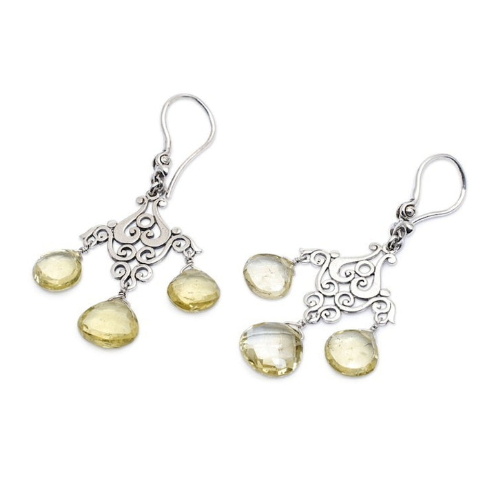 Polished Lemon Quartz Chandelier Earrings Crafted in Bali 'Gala of Felicity'