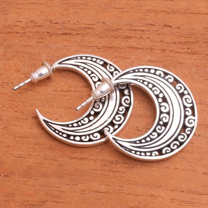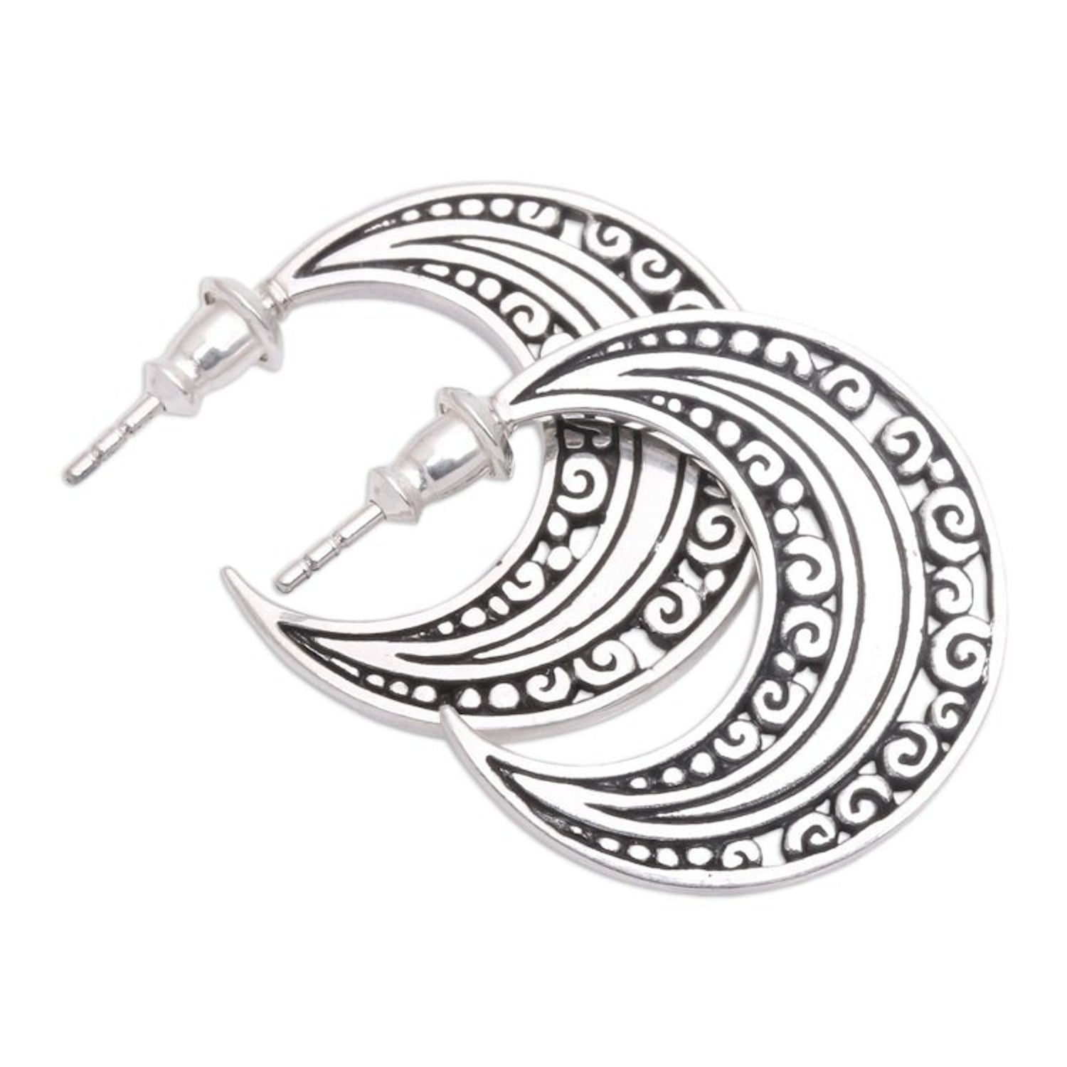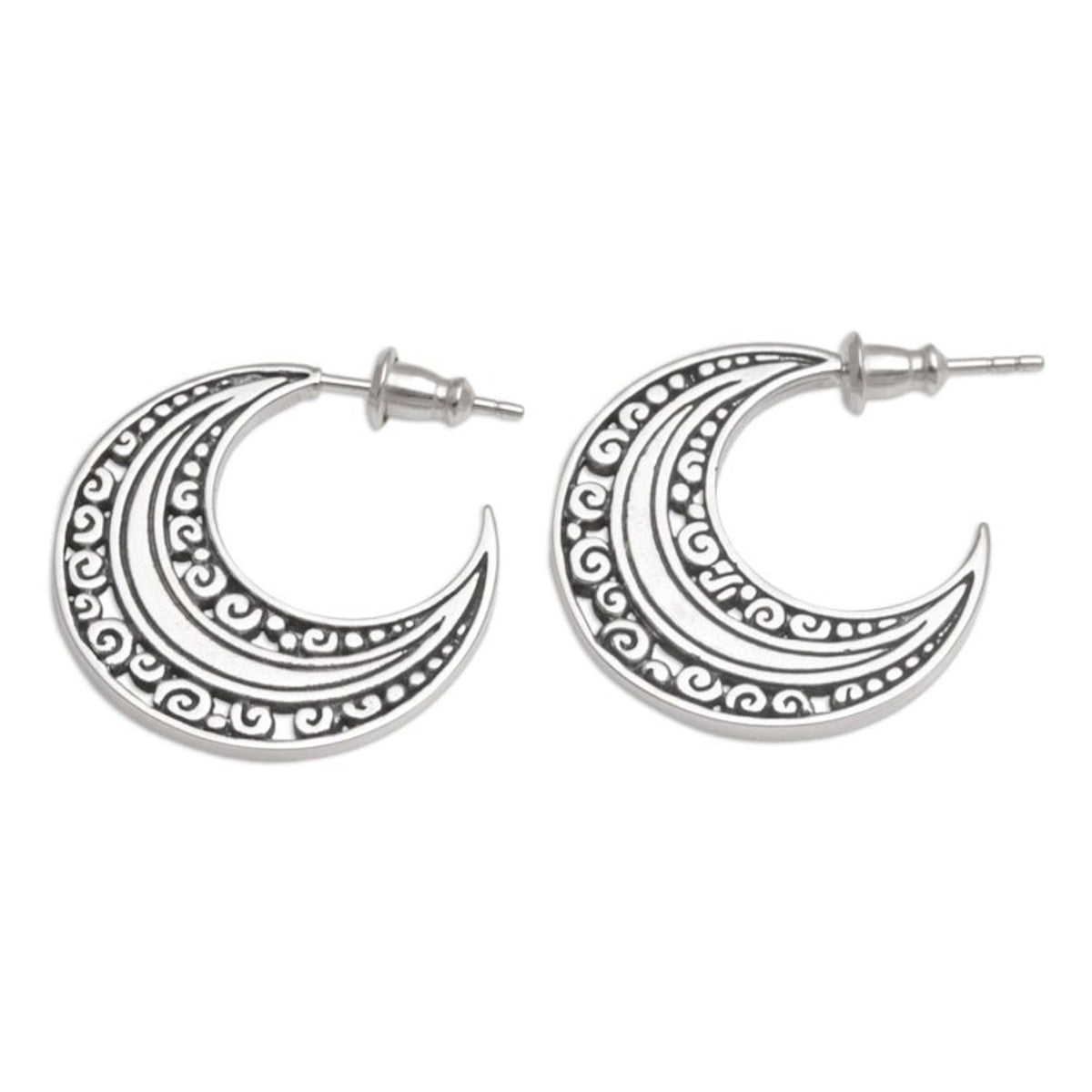 Sterling Silver Crescent Half-Hoop Earrings from Bali 'Curling Crescents'