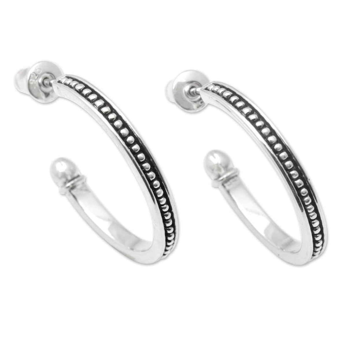 Sterling Silver Half-Hoop Earrings with Little Speckles 'Freckled Curves'