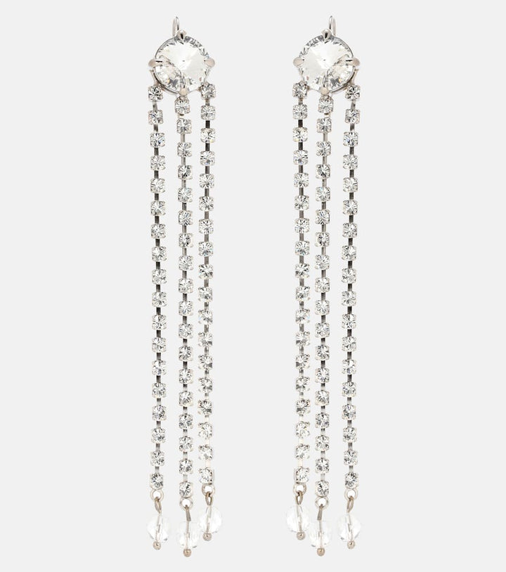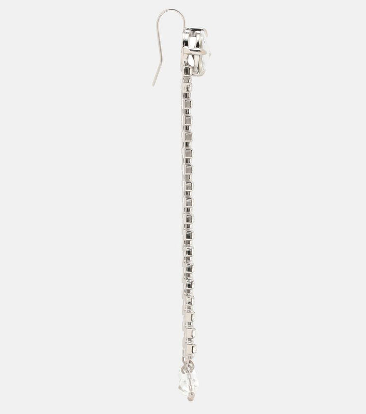 These earrings are made from brass with crystal embellishments in Italy. They have a length of 11.5 cm (4.5") and a max chain length of 1.5 cm (0.5").