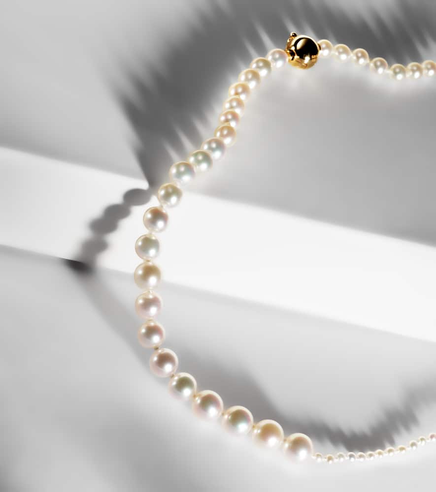 This necklace is made in Denmark from 14kt yellow gold and a freshwater cultivated pearl. It features a clasp fastening, a length of 39 cm (15.5"), a max width of 4 mm (0.15"), and a pendant with a diameter of 7 mm (0.3").