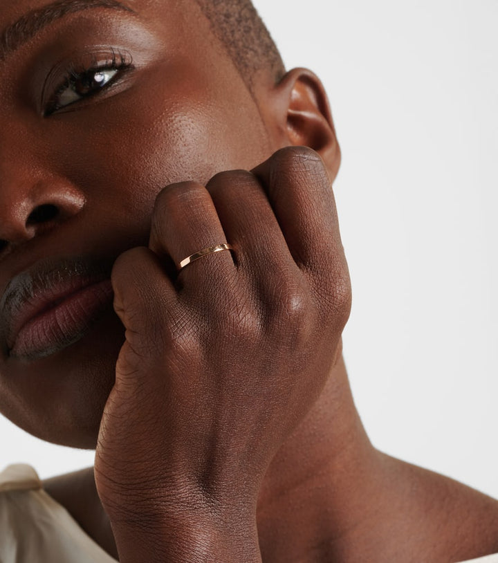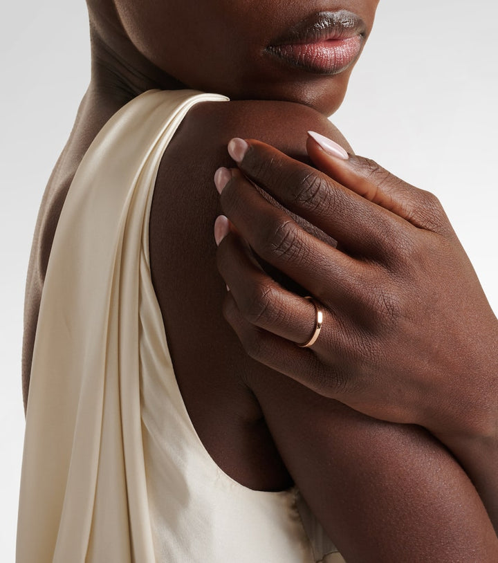 This Berbere 18kt rose gold ring by Repossi is a testament to sublime simplicity and minimalist elegance. Crafted in Italy from radiant 18-karat rose gold, its slender silhouette evokes a sense of timelessness and refined beauty, making it a perfect metaphor for eternity. This ring is ideal for a memorable occasion or as a sophisticated everyday staple. Its delicate and clean design makes it perfect for both solo wear or for adding a touch of luxe simplicity to a stacked look.