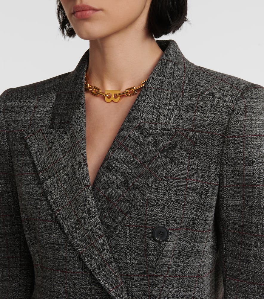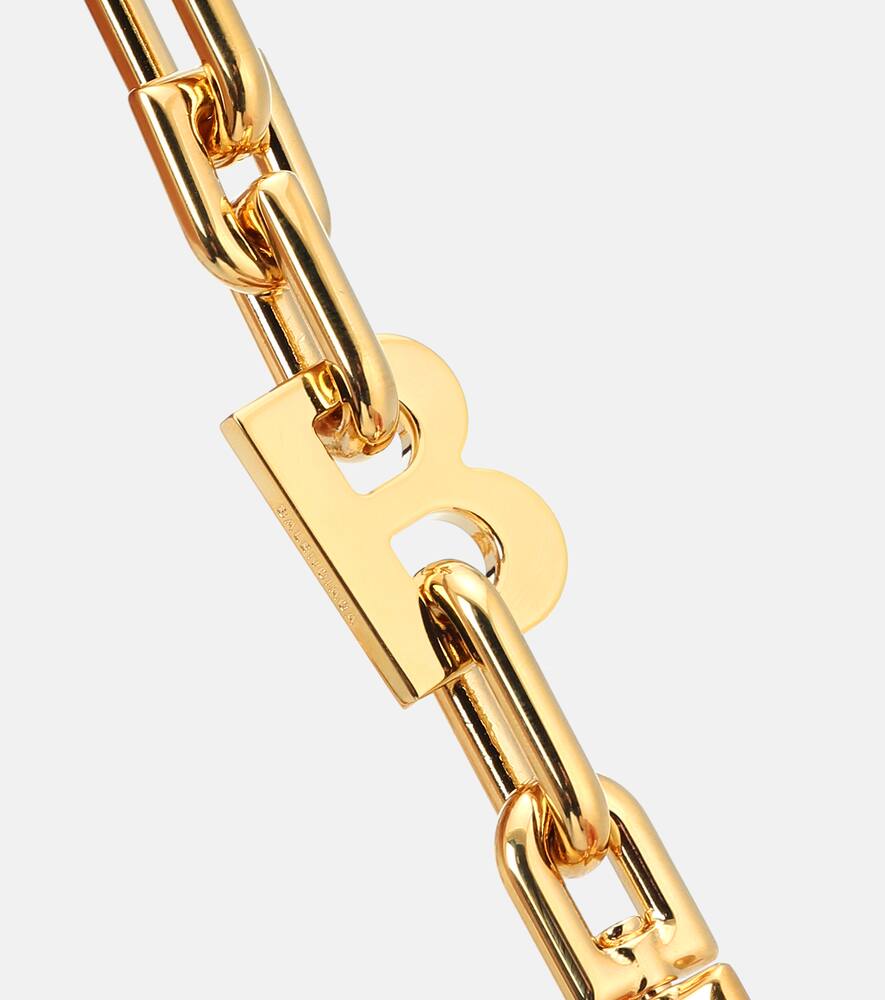 This Chain necklace by Balenciaga is a statement of modern minimalism and urban chic. Crafted in Italy from polished brass, the sleek, chain-link design gives it an edgy yet sophisticated feel. The shiny gold finish adds a touch of luxurious confidence, making it a versatile piece that can be worn alone for a subtle statement or layered with other necklaces for a bolder look. This piece symbolizes a blend of contemporary style and timeless elegance, perfect for adding a refined touch to any outfit.
