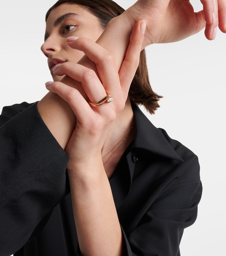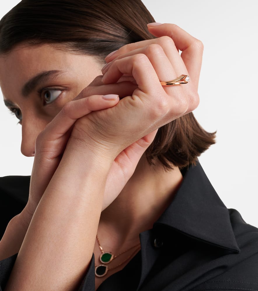 This Serti Inversé 18kt rose gold ring with diamond by Repossi is a testament to timeless design and modern elegance. Crafted in Italy from 18kt rose gold, its unique curved silhouette is designed to perfectly frame a stunning 0.4 carat pear-cut white diamond. This ring is a true statement piece that you'll cherish forever. It symbolizes a sophisticated and luxurious approach to jewelry, perfect for wearing alone or as part of a striking stacked look.