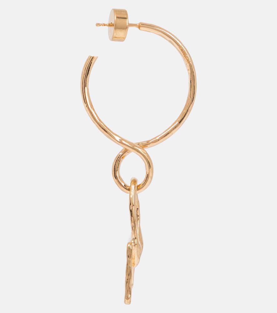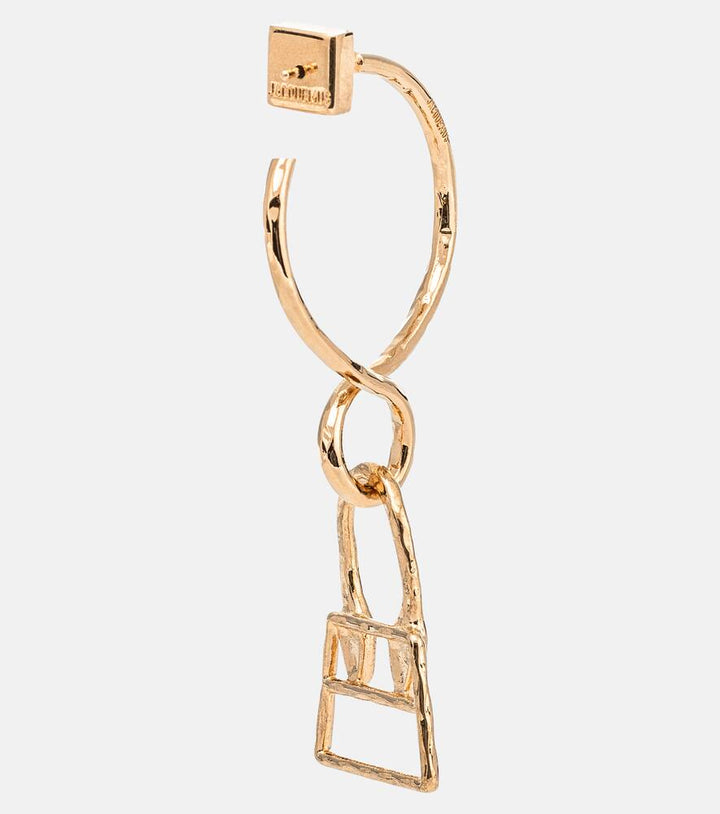 These Hoop earrings by Jacquemus are a modern and minimalist statement, exuding a sense of sculptural elegance. Crafted in Italy from polished brass, their unique, elongated hoop shape provides an artistic and refined look. The raw gold finish adds a touch of natural, understated luxury. These earrings are perfect for adding an architectural and contemporary flair to any outfit, embodying a sophisticated yet effortless style.