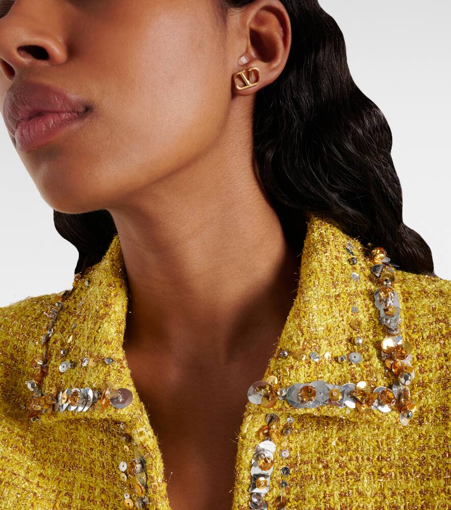 These VLogo stud earrings by Valentino are a classic and iconic statement, exuding the house's luxurious and contemporary aesthetic. Crafted in Italy from polished brass, the signature VLogo emblem is a powerful and glamorous symbol of style and heritage. The striking gold finish makes these earrings perfect for adding a touch of opulent drama to any look. They are a classic and essential accessory for anyone who embraces the heritage and confident style of Valentino.