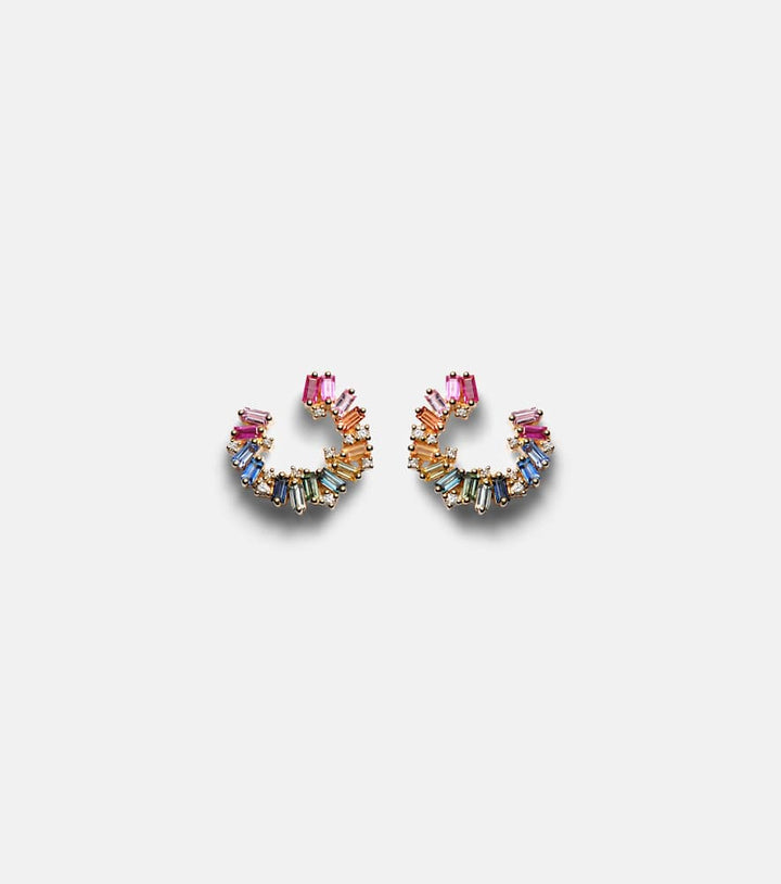 Rainbow 18kt gold hoop earrings with diamonds and sapphires