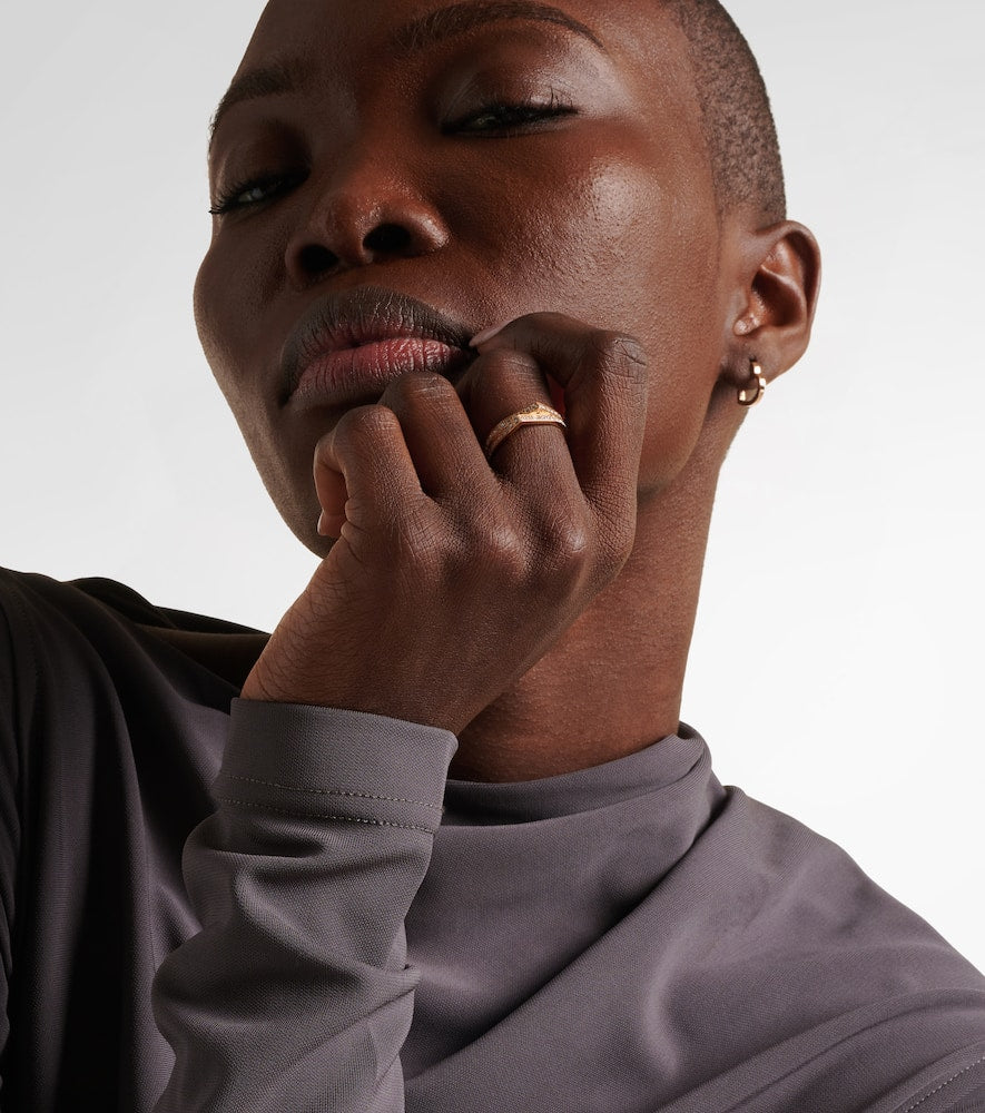 Made in Italy from 18kt rose gold, this ring is lined with 0.52 carats of pavé-set diamonds. It has a max width of 5 mm (0.2').
