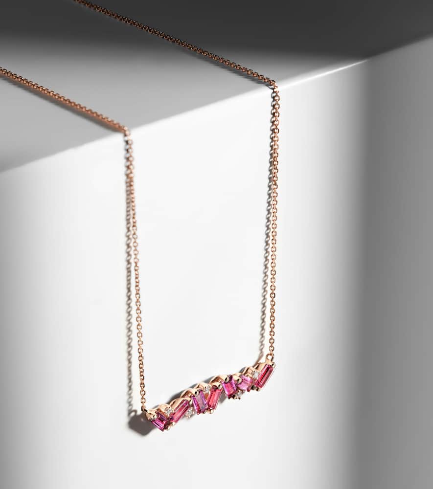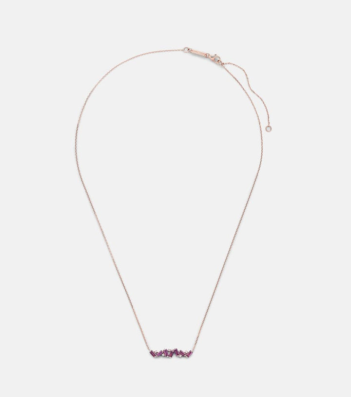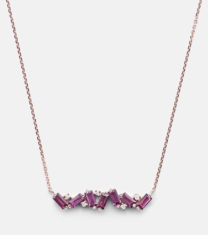 Frenesia Bar 14kt gold necklace with rhodolite and diamonds