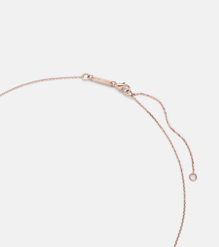 This necklace is handmade in the USA from 14kt yellow gold with a lobster-clasp fastening. It features 0.05 carats of white diamonds and rhodolite.