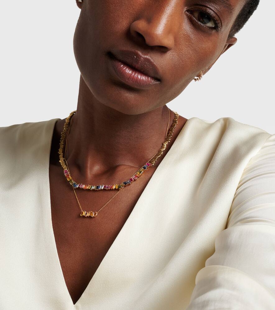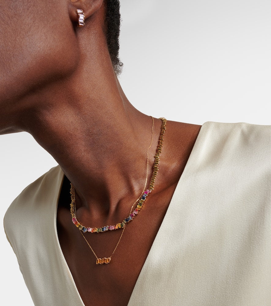 This 14kt yellow gold necklace with citrines by Suzanne Kalan is a vibrant and enchanting piece, perfect for adding a touch of color to your jewelry collection. Handmade in the USA from 14kt yellow gold, this necklace features a beautiful chain adorned with baguette-cut citrines in a prong setting. The warm yellow gold complements the fiery tones of the stones, creating a harmonious and luxurious look. It's a statement of modern elegance, perfect for those who appreciate both natural beauty and refined craftsmanship.
