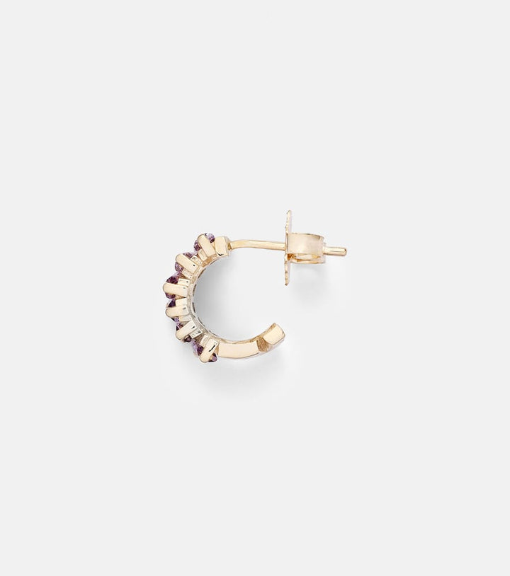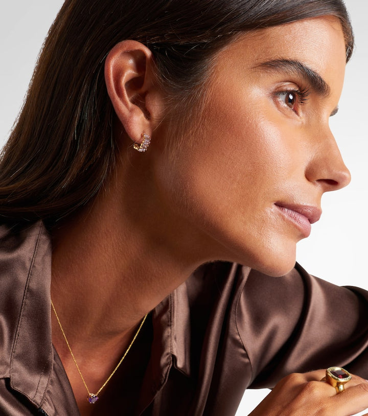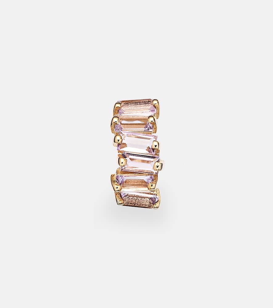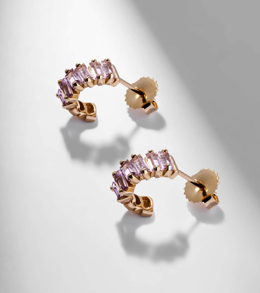 These Gia 14kt gold earrings with amethysts by Suzanne Kalan are a dazzling and unique statement, perfect for adding a touch of brilliant color to your look. Crafted in the USA from 14kt yellow gold, these earrings feature baguette-cut amethysts in a prong setting. The stunning arrangement of stones creates a modern and sophisticated aesthetic. These earrings are a celebration of vibrant color and refined craftsmanship.
