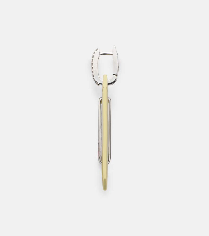 This exclusive single earring is made from 18kt white gold and 925 sterling silver with 0.17 carats of pavé-set diamonds. It has a length of 49 mm (1.95") and a max width of 18 mm (0.7").