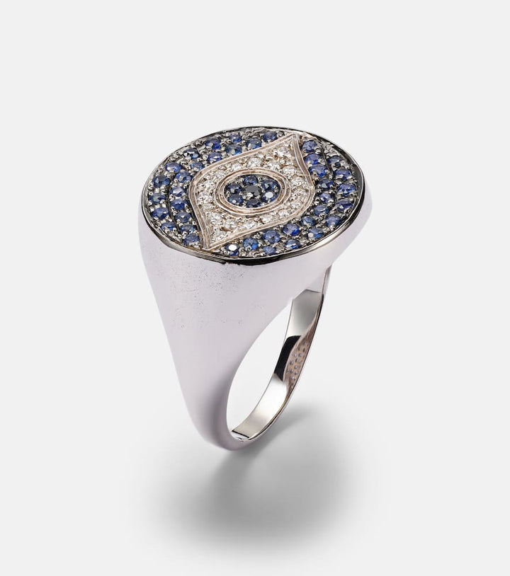 Dawn Chevalier 18kt gold ring with diamonds and sapphires