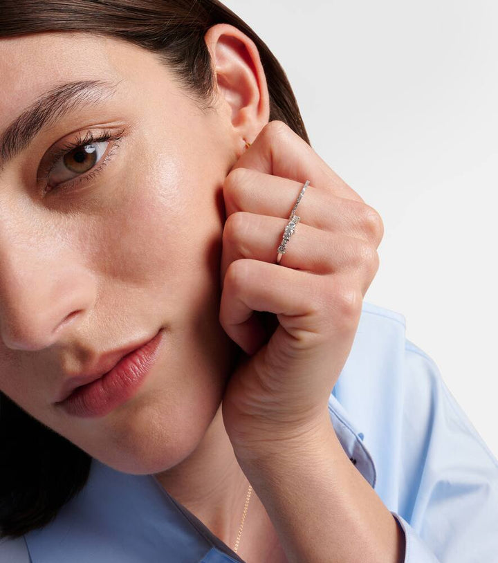 This Thread Band 18kt gold ring with diamonds by Ileana Makri is an elegant and timeless choice for marking memorable events. Handmade in Greece, this slender band is crafted from 18kt white gold and beautifully pavé-set with 0.28 carats of dazzling white diamonds. Its delicate design makes it perfect for stacking or wearing on its own for a refined look. It is a symbol of enduring elegance and refined simplicity.