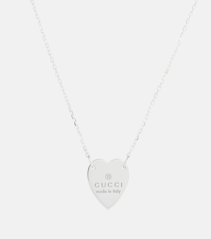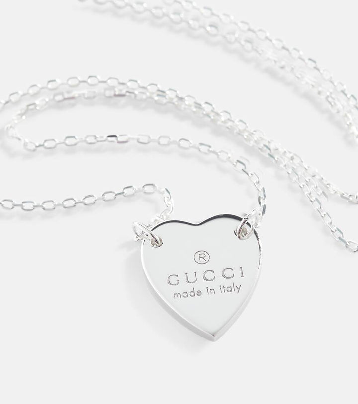 This Sterling silver heart necklace by Gucci is a classic and romantic statement piece, exuding the brand's luxurious and elegant aesthetic. Crafted in Italy from 925 sterling silver, the delicate chain holds a beautifully polished heart pendant, making it a powerful symbol of love and affection. The timeless design is perfect for adding a touch of sentimental charm to your daily look. This piece is a cherished classic that you will love for years to come.