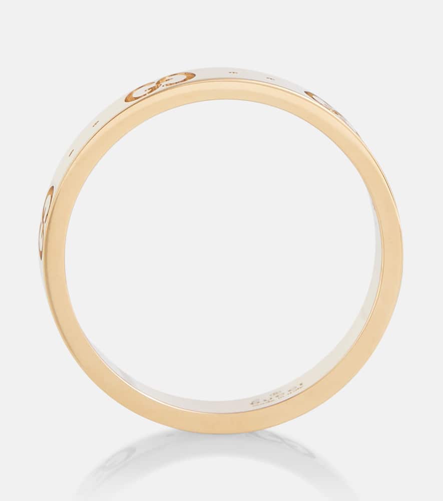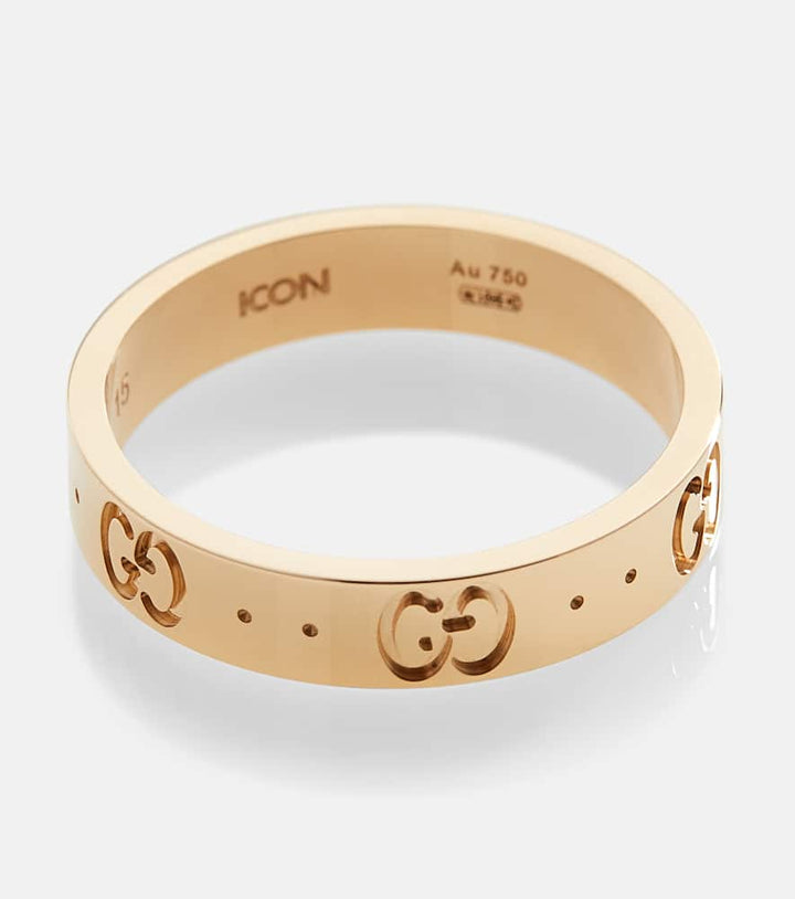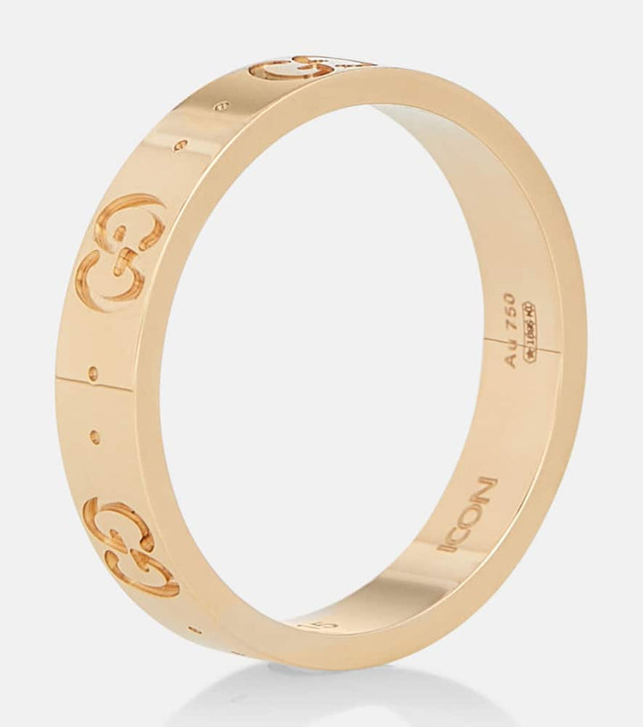 This Icon 18kt yellow gold ring by Gucci is a classic and iconic statement piece that will suit both minimalists and maximalists alike. Made in Italy from 18kt yellow gold, the slender band is delicately engraved with the house's iconic Double G motif. This understated design is perfect for adding a touch of refined luxury to your daily look. It can be worn on its own for a subtle statement or stacked with other pieces for a bolder, more personalized style.