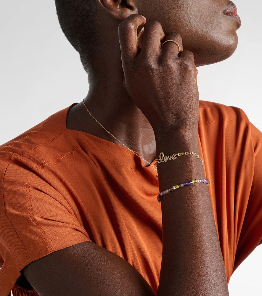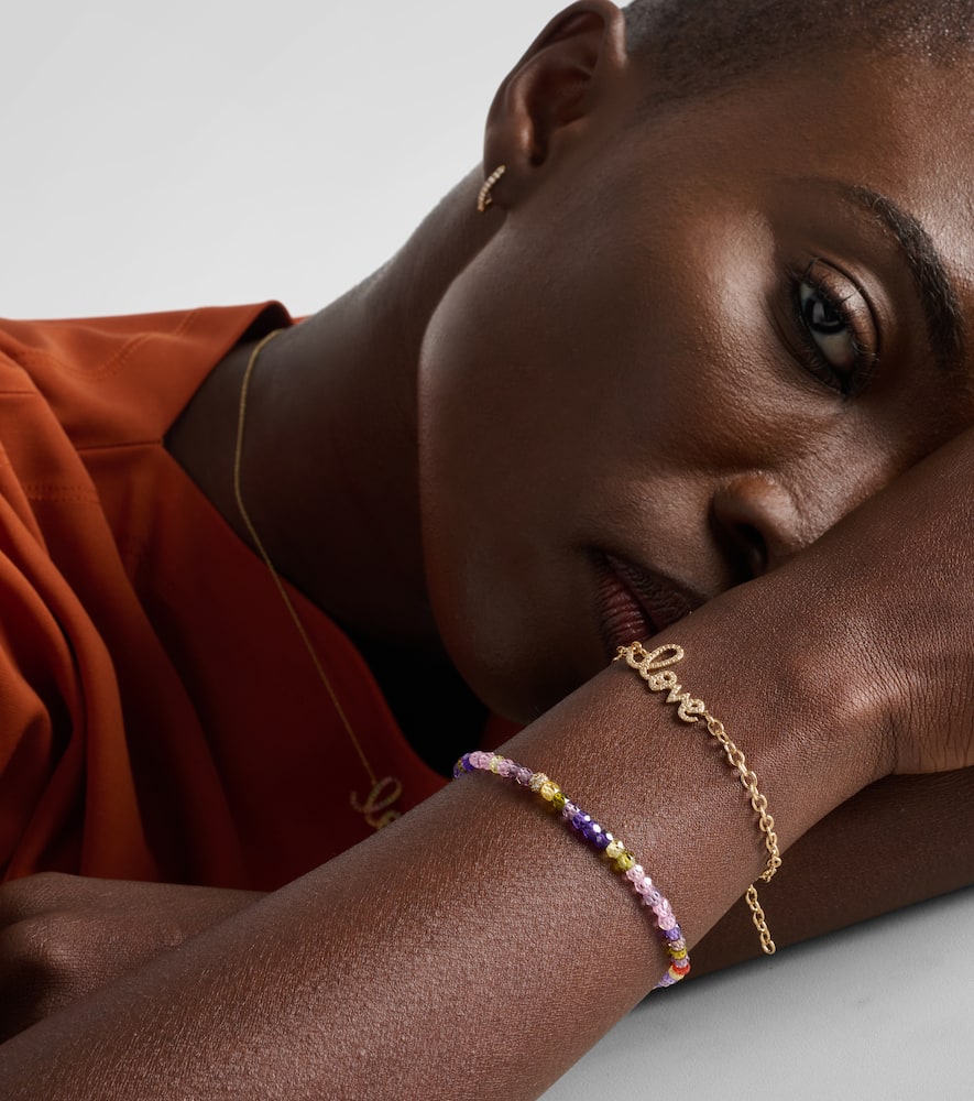 This 14kt gold zirconia bracelet with diamonds by Sydney Evan is a vibrant and enchanting statement piece, perfect for adding a playful pop of color to your jewelry collection. Made in Hong Kong from 14kt yellow gold, this elasticated bracelet is adorned with a brilliant array of glittering zirconia stones and diamonds. The design is a celebration of joyful style and is perfect for adding a touch of high-octane sparkle to your wrist.
