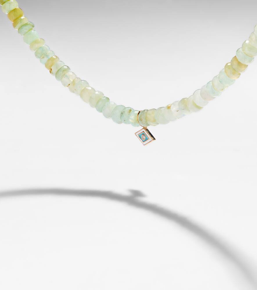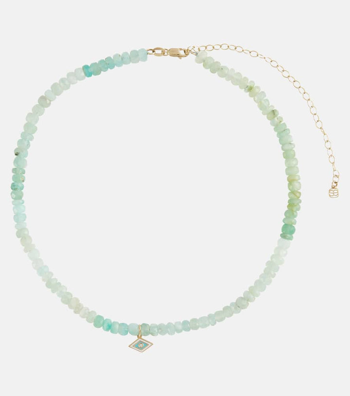 Tiny Groovy Eye 14kt gold beaded choker with diamond