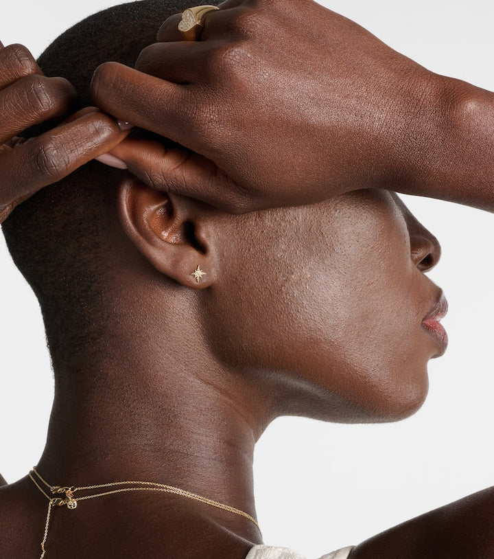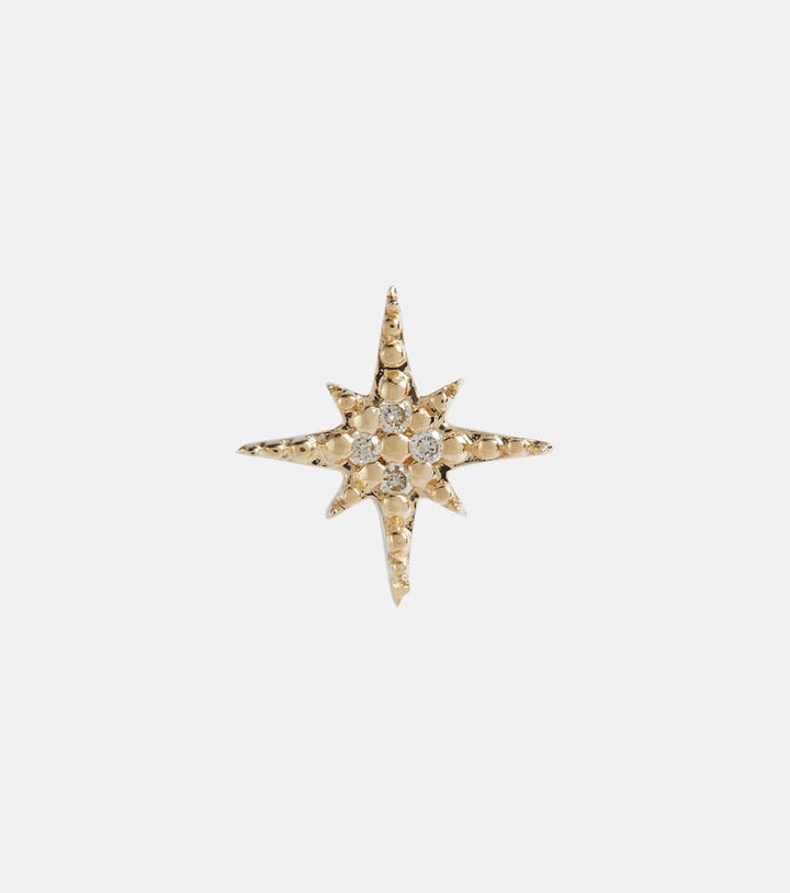 These Starburst 14kt yellow gold stud earring with diamonds by Sydney Evan are a celestial and enchanting statement. Made in Hong Kong from 14kt yellow gold, these stud earrings feature a beautiful starburst design adorned with brilliant white diamonds. The design is a celebration of magical, whimsical style and is a symbol of hope and aspiration. These earrings are a perfect addition for adding a touch of romantic charm to your daily look.