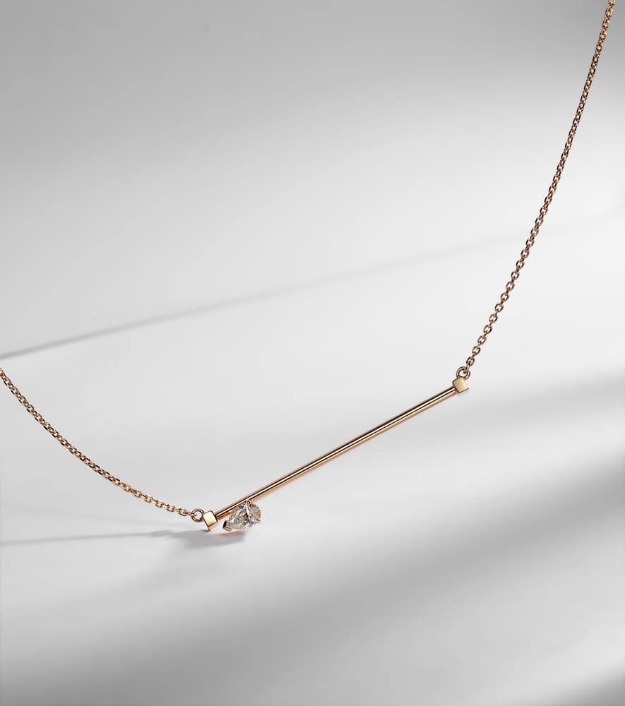 Handcrafted in 18kt rose gold, set with a pear-shaped diamond. Lobster-clasp fastening. Made in Italy.