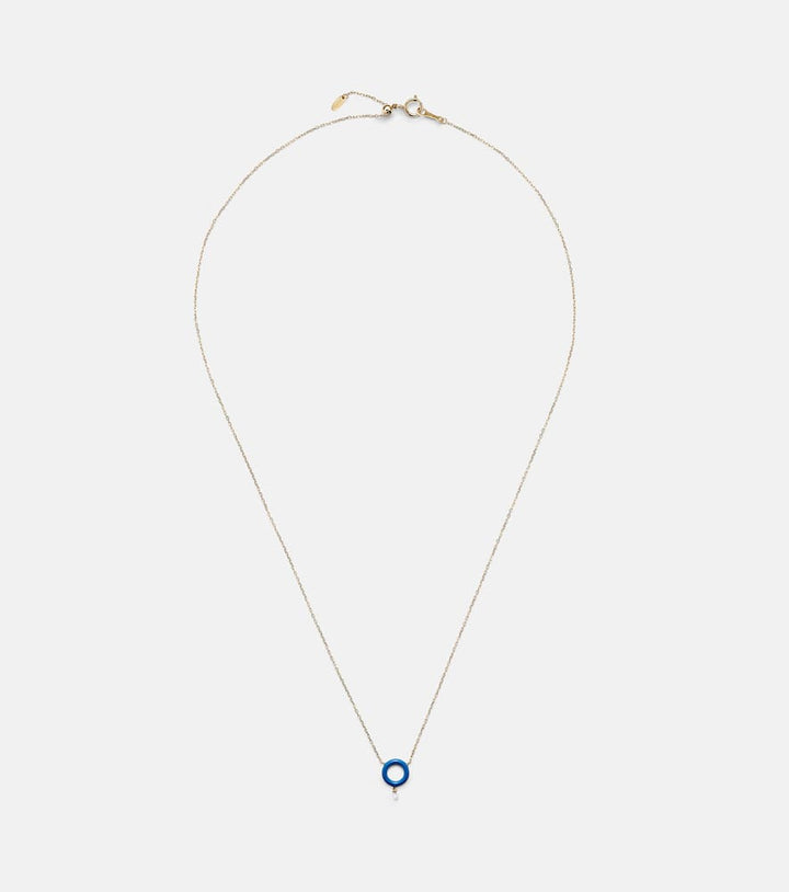 Handcrafted in 18kt yellow gold, set with a round-cut diamond. Adjustable length 42.5cm-16.5", pendant diameter 8mm-0.3". Cable chain. Lobster-clasp fastening. Made in Belgium.