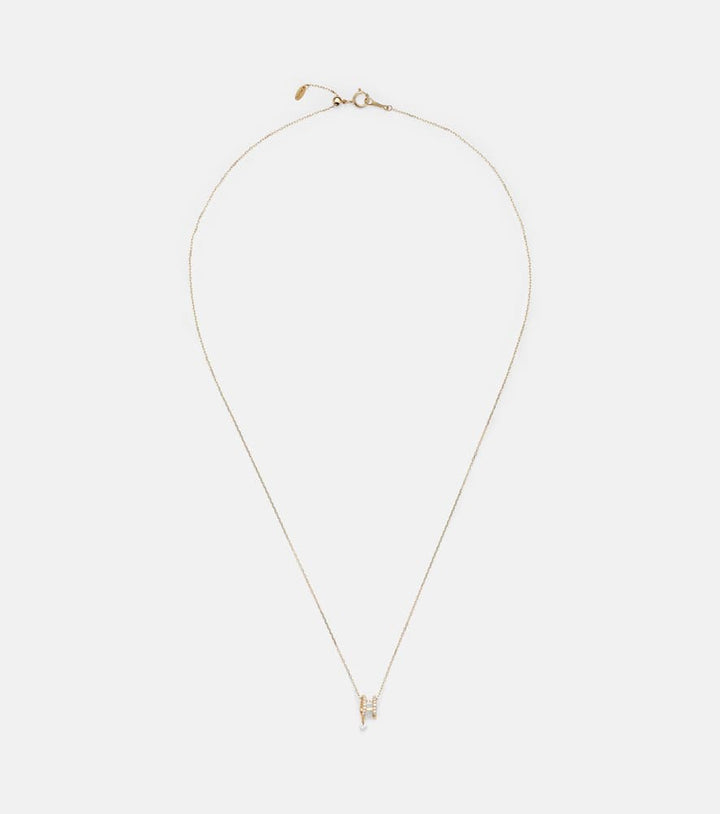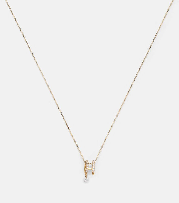 Handcrafted in 18kt yellow gold with round-cut pavé-set diamond. Adjustable length 42cm-16.5", pendant 10mm-0.4" length, 5mm-0.2" width. Clasp fastening. Made in Belgium.