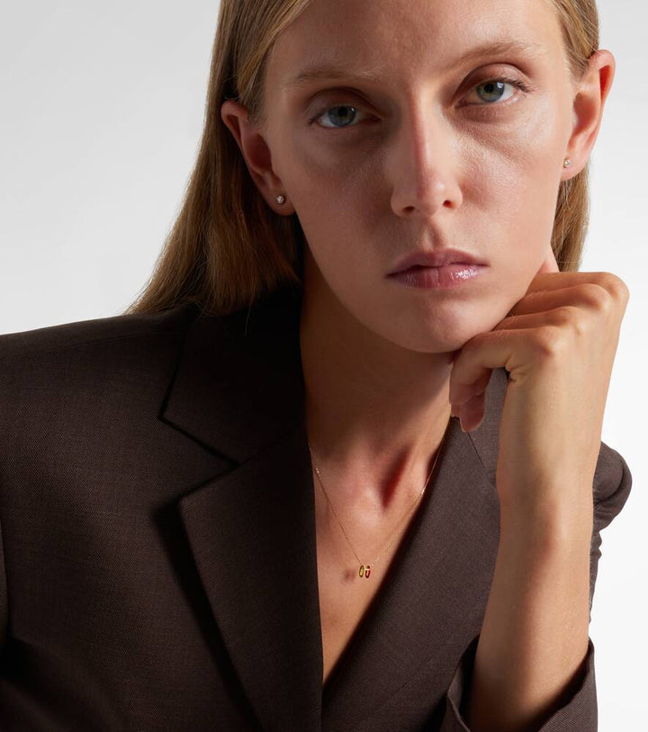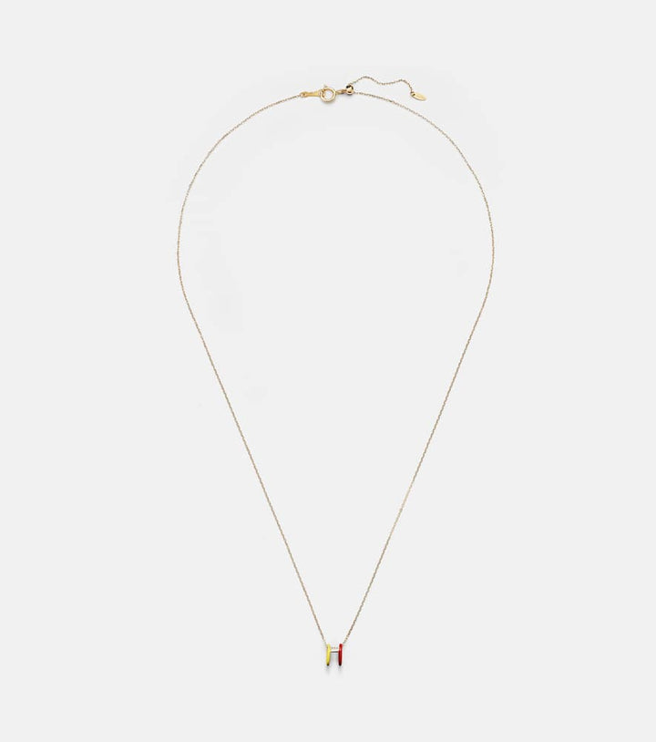 Made from 18kt gold-plated brass with enamel. Adjustable length 41cm-16", pendant 7mm-0.3" length, 5mm-0.2" width. Made in Belgium.