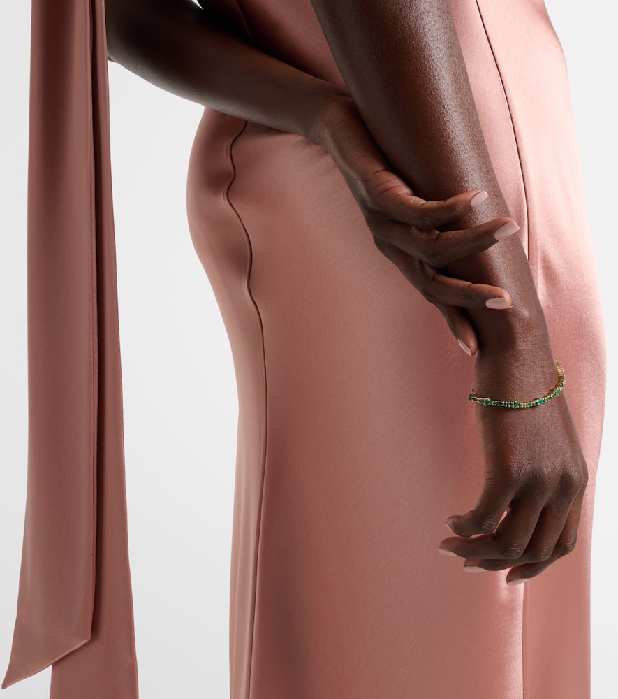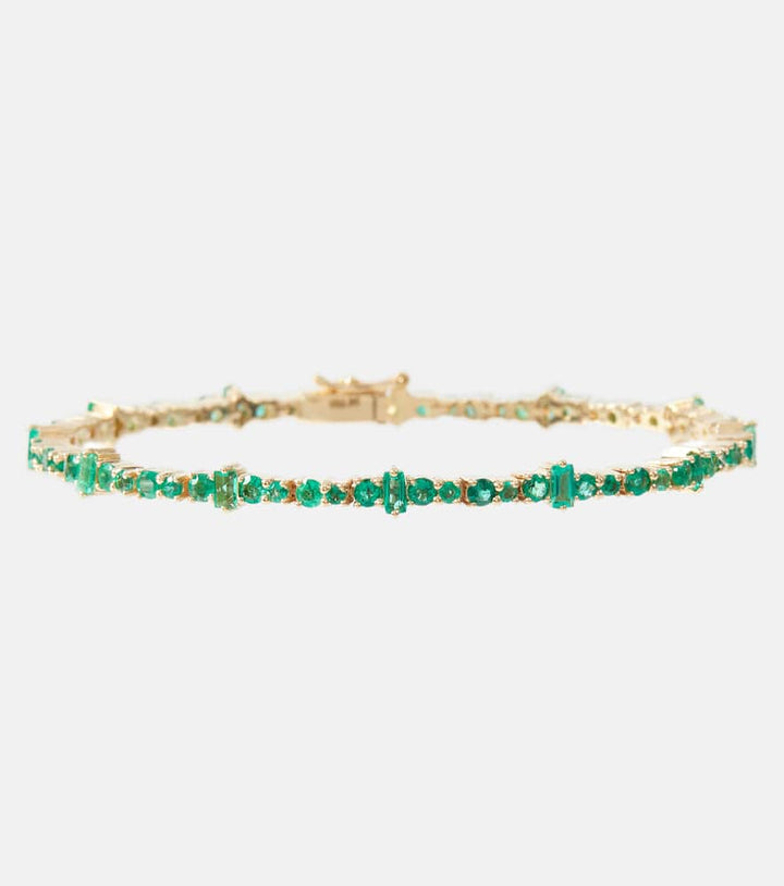 This Ileana Makri Rivulet 18kt gold bracelet with emeralds by Ileana Makri is a luxurious statement piece. Crafted in 18kt yellow gold, it features 11.9ct of round- and baguette-cut emeralds in a prong setting, symbolizing vitality and elegance. Clasp fastening ensures secure wear.