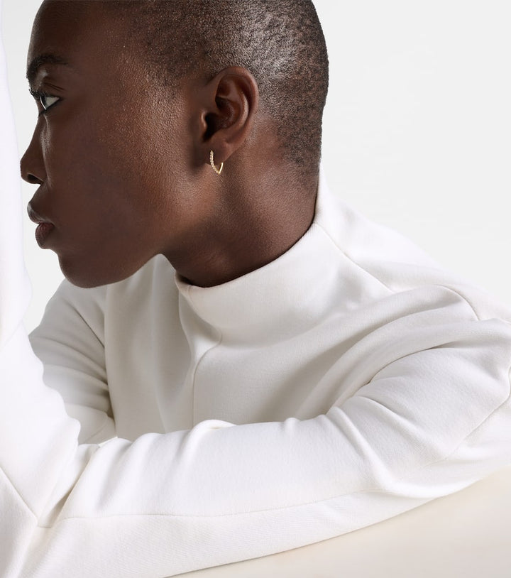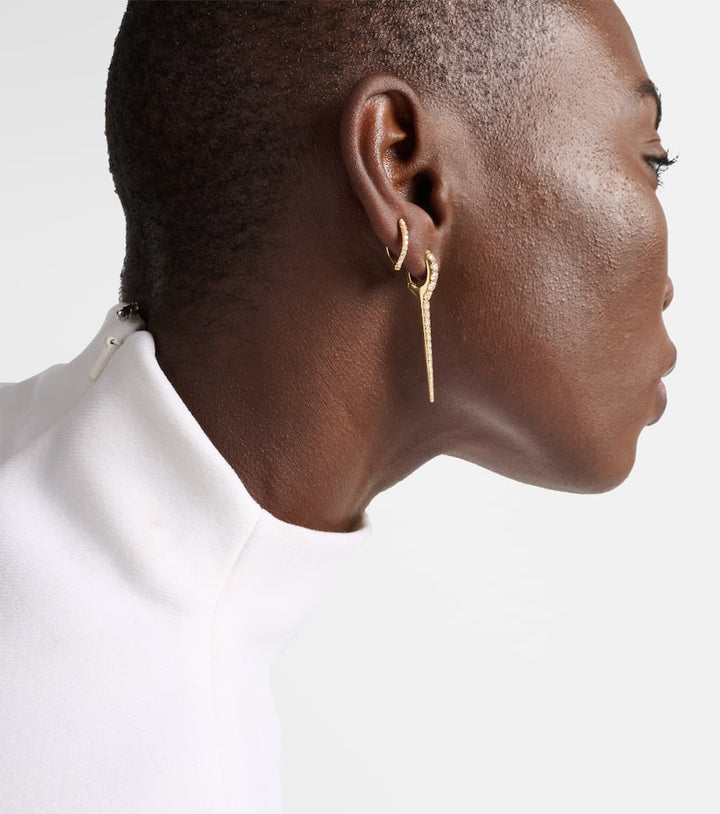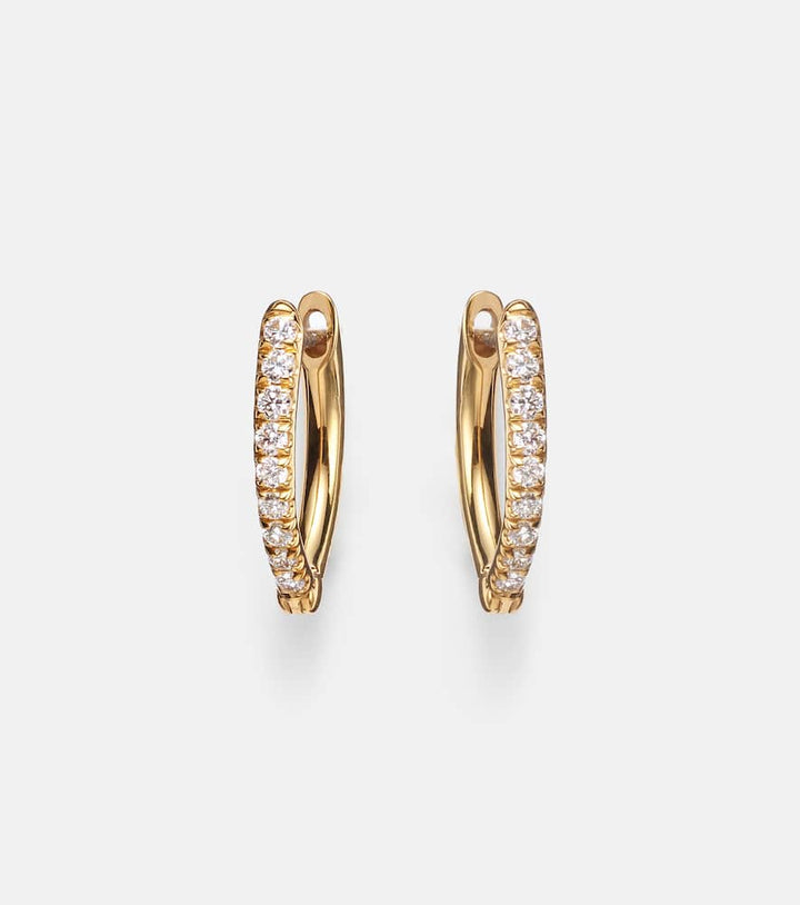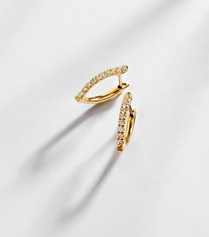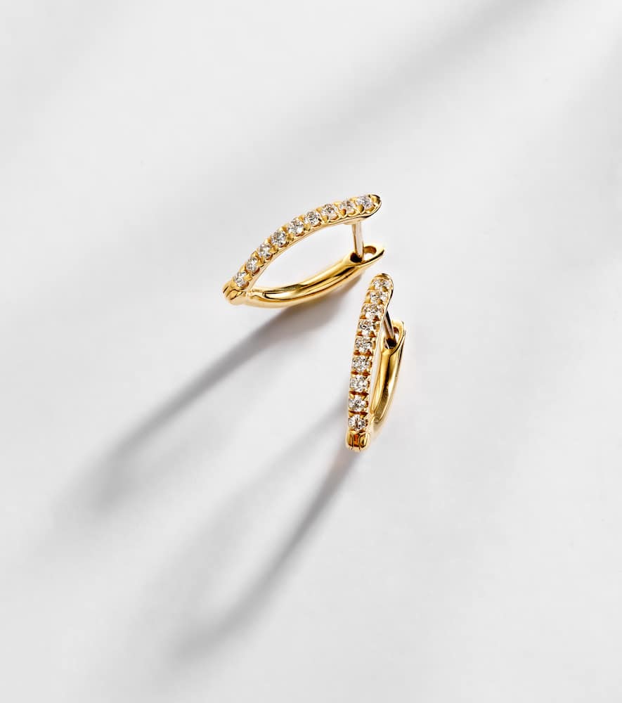 These Melissa Kaye Cristina Small 18kt gold earrings with diamonds by Melissa Kaye are refined, contemporary, and versatile. Crafted in 18kt yellow gold with 0.29ct round-cut diamonds in a pavé setting, the hinge closure ensures secure wear for pierced ears.