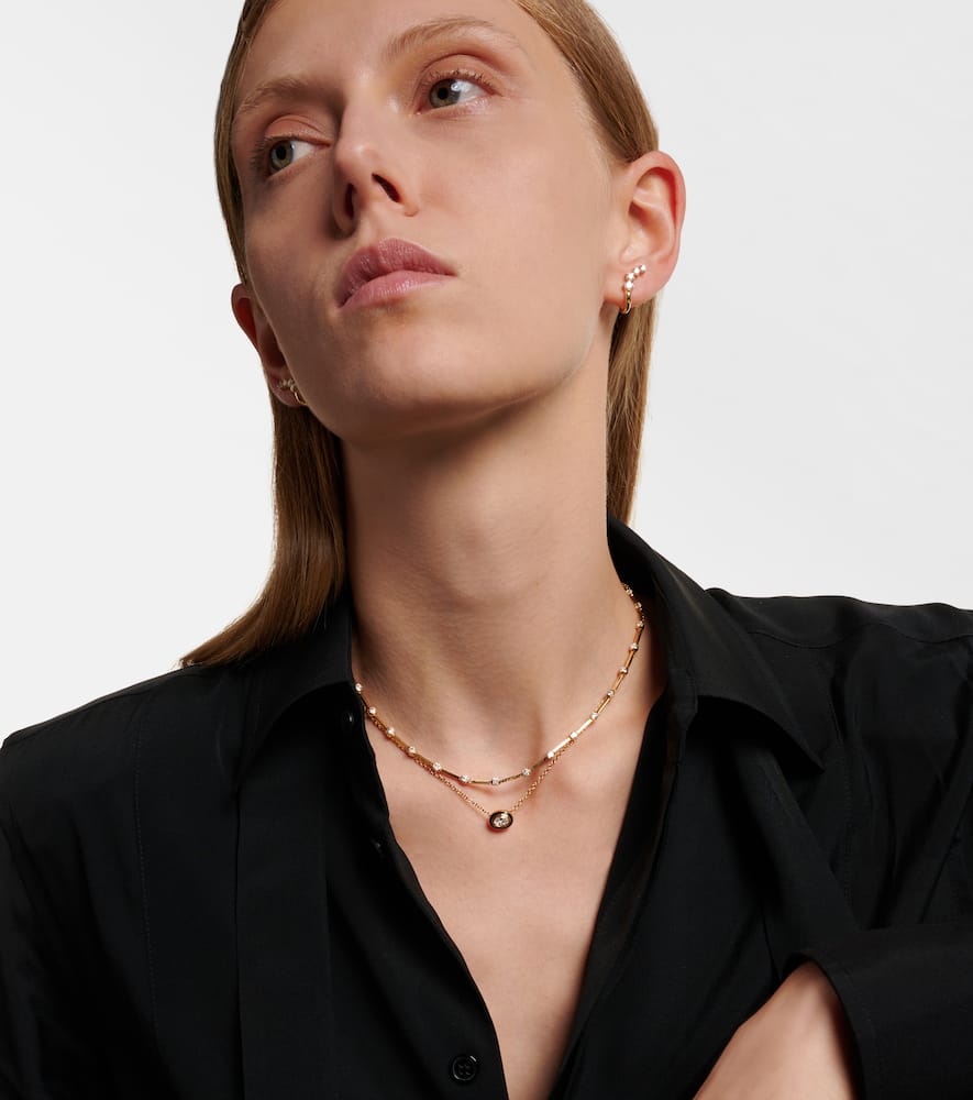 This Melissa Kaye Zea Linked 18kt gold necklace with diamonds by Melissa Kaye is a sophisticated, luminous statement. Handmade in 18kt yellow gold in the USA, it features 3.47ctw round-cut prong-set diamonds along a linked chain, creating a refined sparkle suitable for both layering and standalone wear.