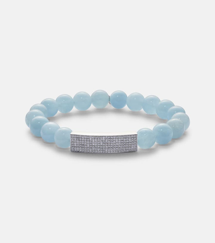 This Sydney Evan 14kt beaded bracelet with diamonds and white gold by Sydney Evan offers subtle luxury. Crafted in 14kt white gold with pavé-set diamonds totaling 0.49ct, the elasticated band ensures comfort while the 8mm width adds understated elegance.