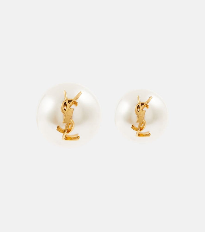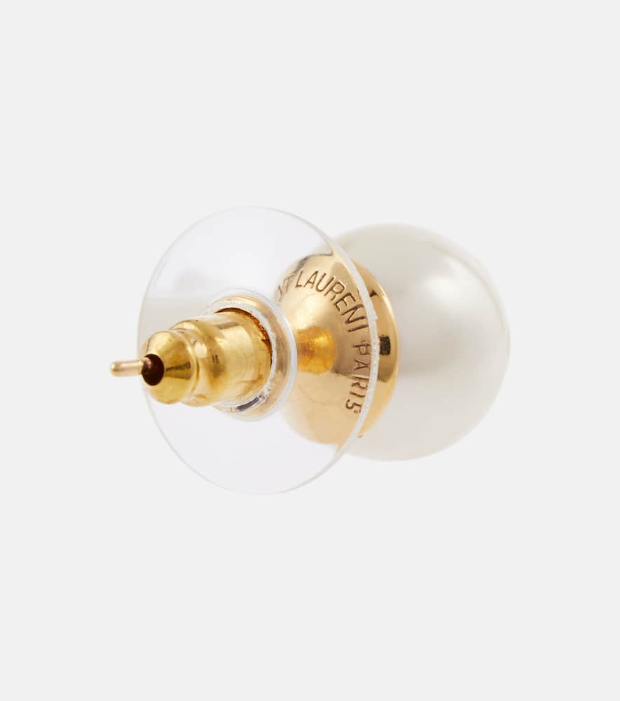 These Saint Laurent Logo faux pearl stud earrings by Saint Laurent are a chic, iconic statement. Crafted from brass with faux pearls, they combine classic sophistication with modern design. Post-back closure ensures secure wear for pierced ears.