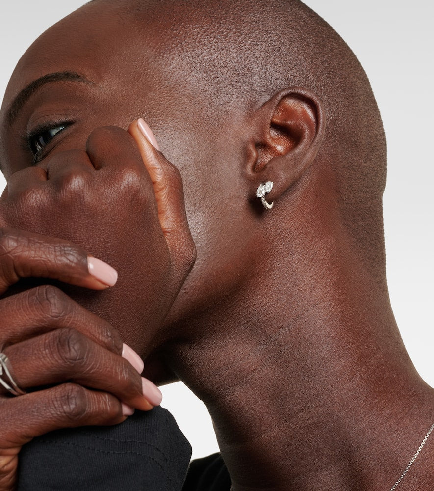 This Repossi Serti Sur Vide 24kt white gold single earring with diamonds by Repossi combines modern elegance with refined sparkle. Crafted in 24kt white gold, it features pavé-set and pear-shaped diamonds and a hinge closure for pierced ears.