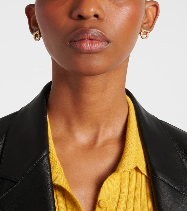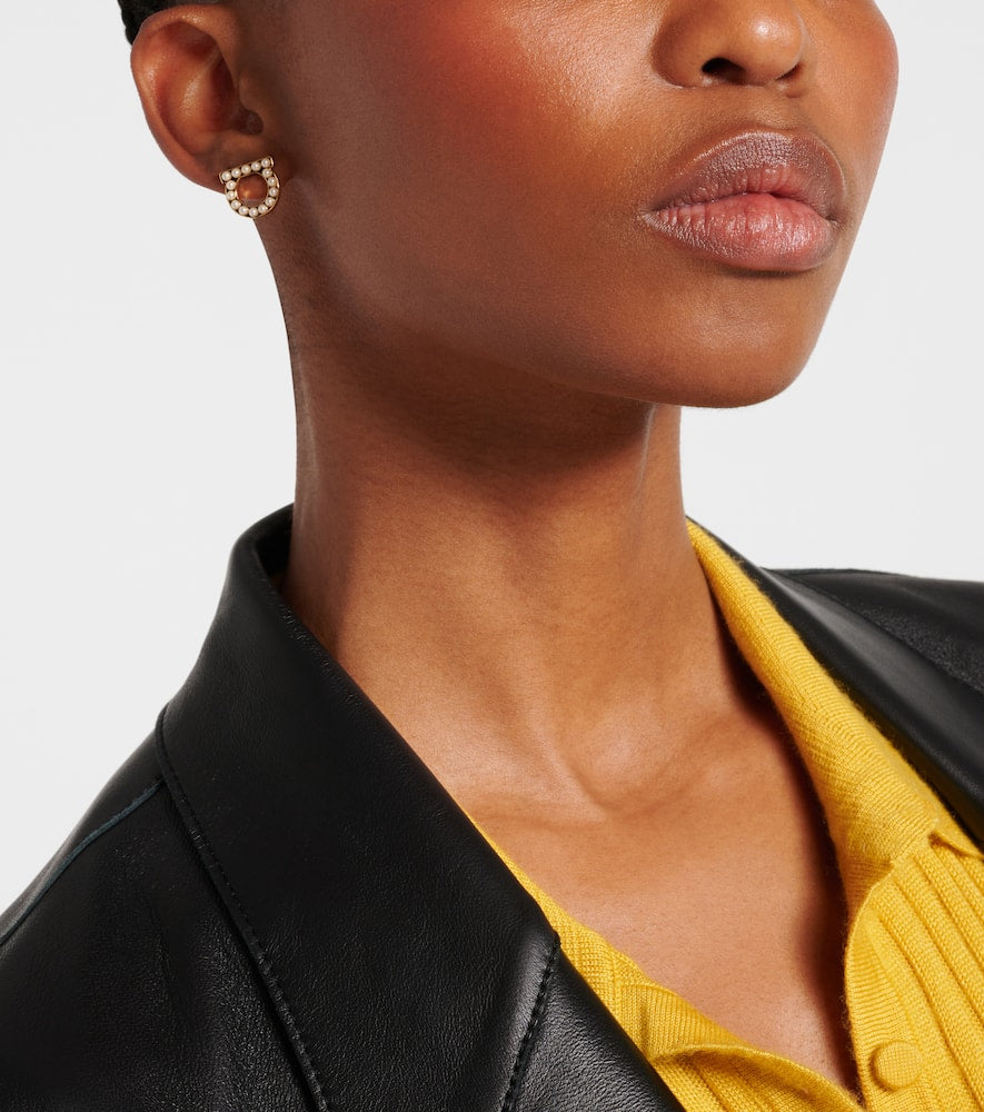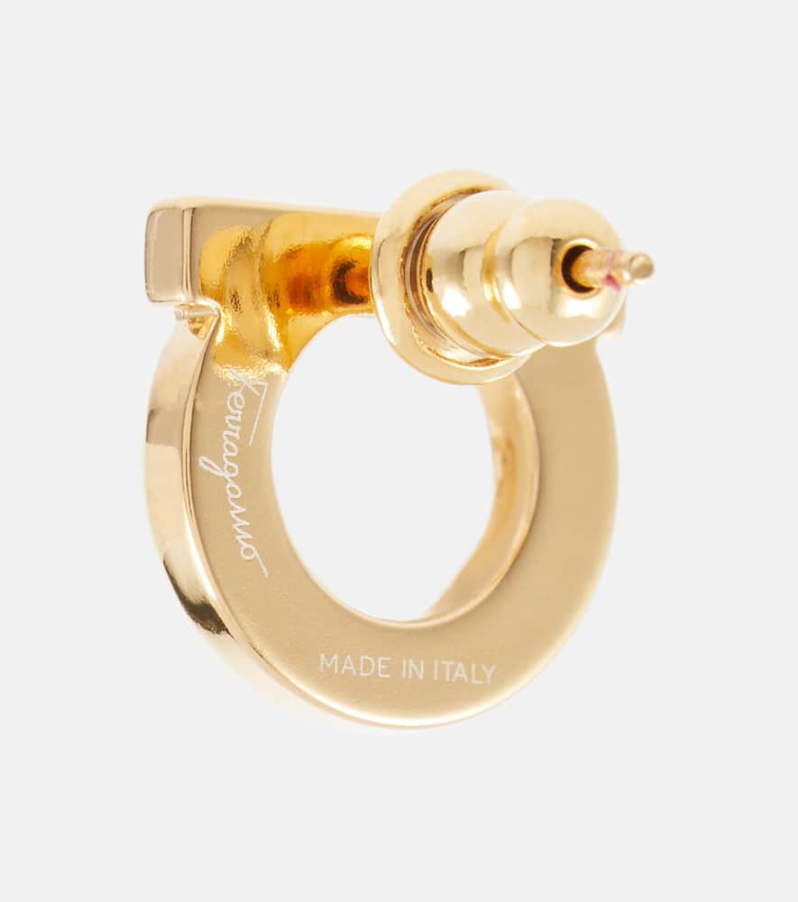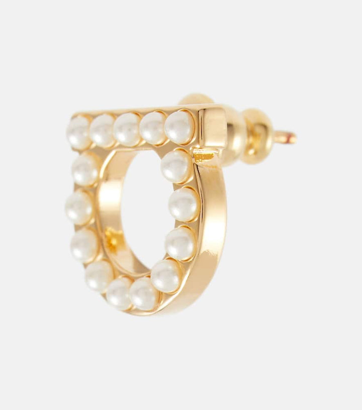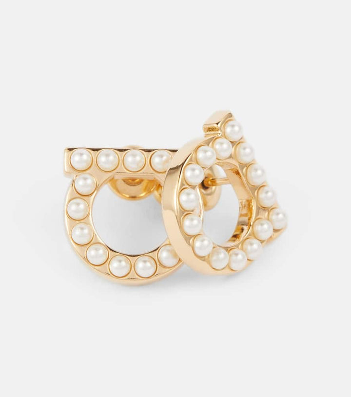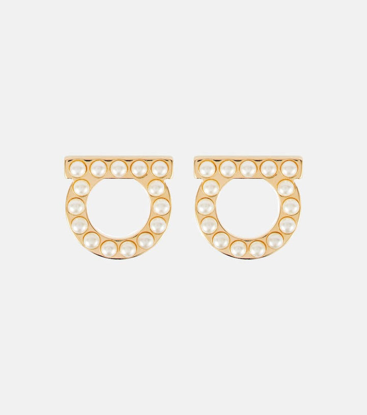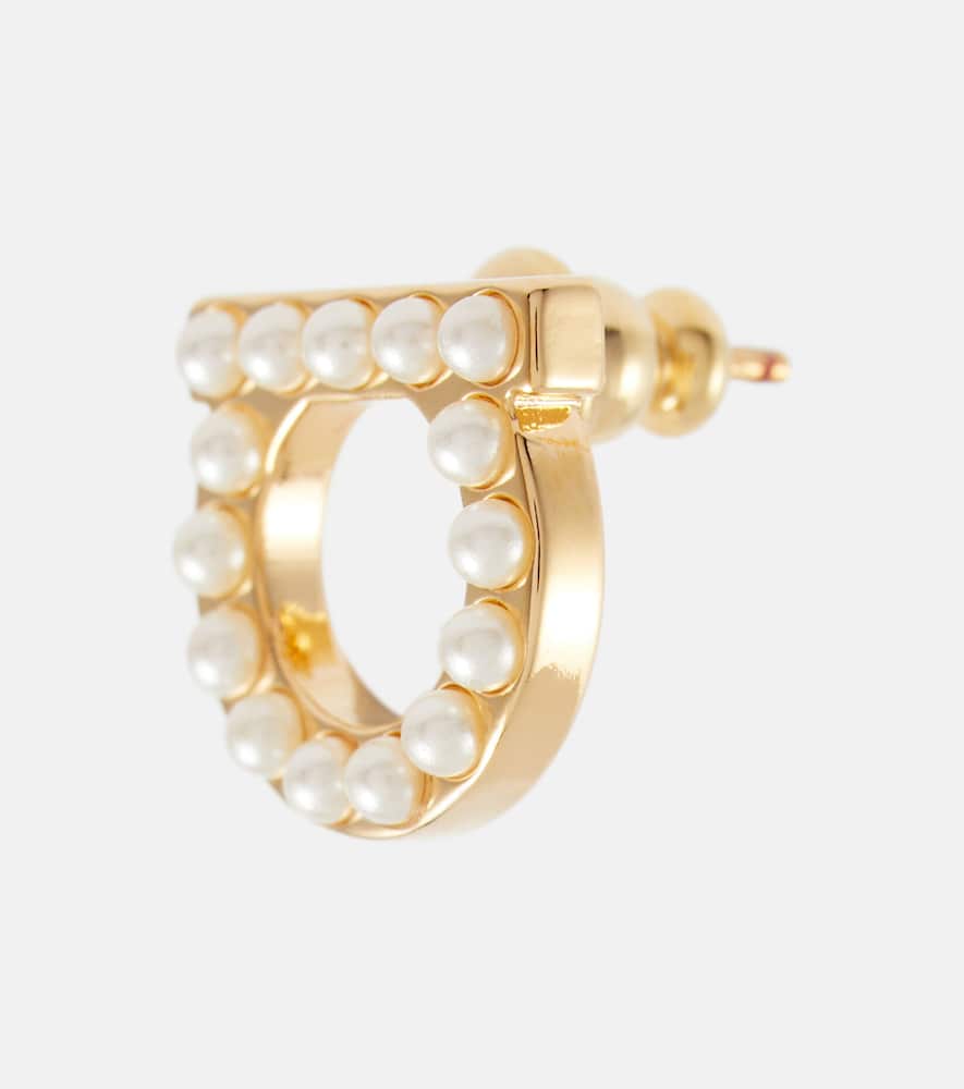 These Ferragamo Gancio faux pearl-embellished earrings by Ferragamo exude classic sophistication. Crafted in brass and Plexiglas, they feature faux pearls for a refined, elegant look suitable for pierced ears.