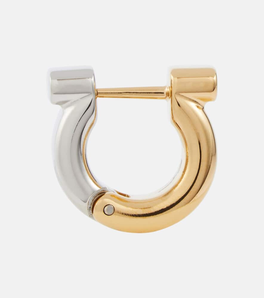 These Ferragamo Gancio earrings by Ferragamo are a sophisticated statement with mixed metallic tones. Crafted in gold-plated brass and brass, they feature a polished gold and silver finish with a secure clasp fastening for pierced ears.